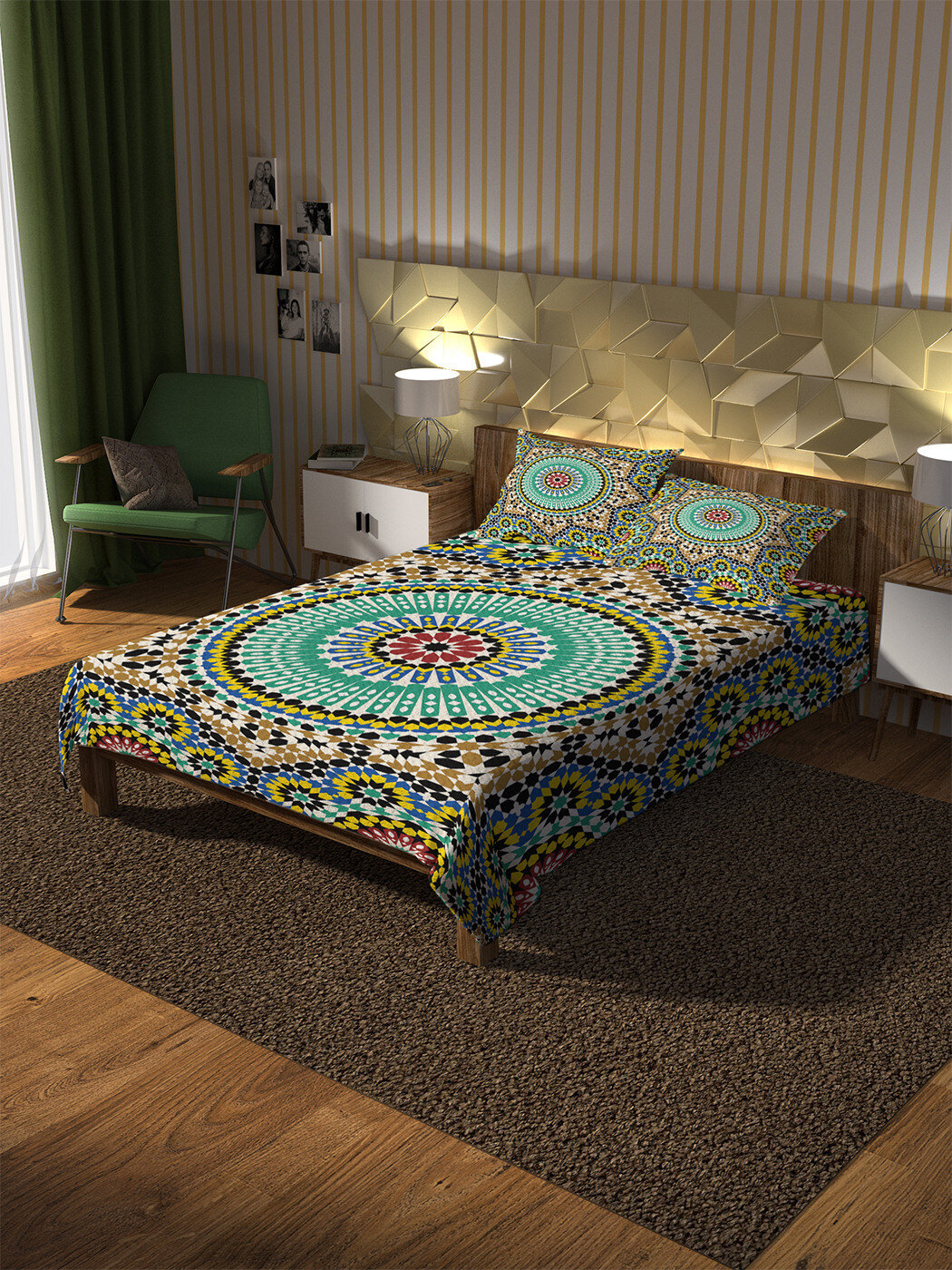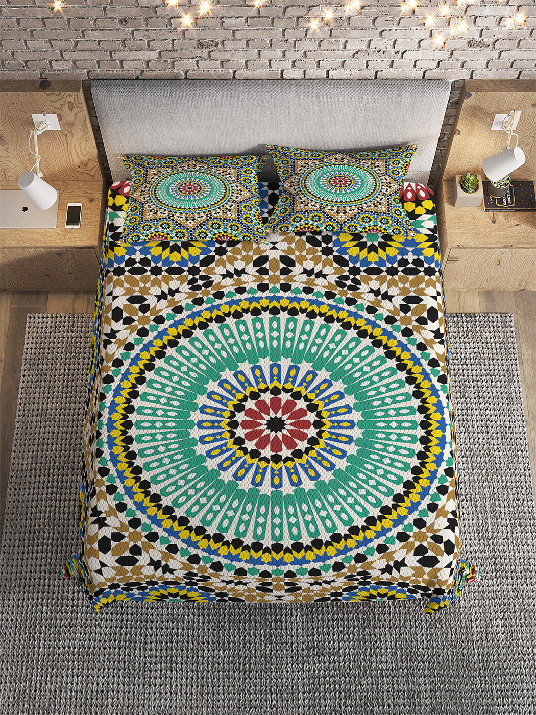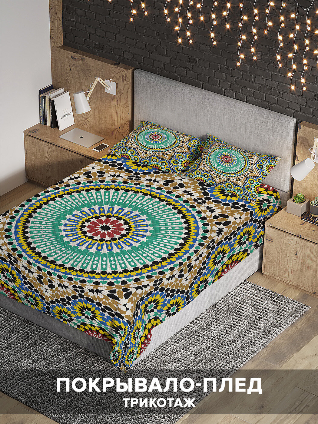 Модель: Покрывало стеганое Цветной орнамент 235x220 и две наволочки 70х50