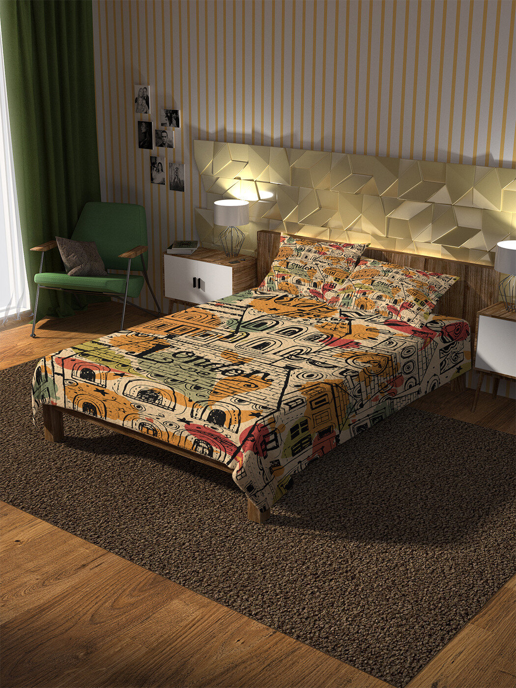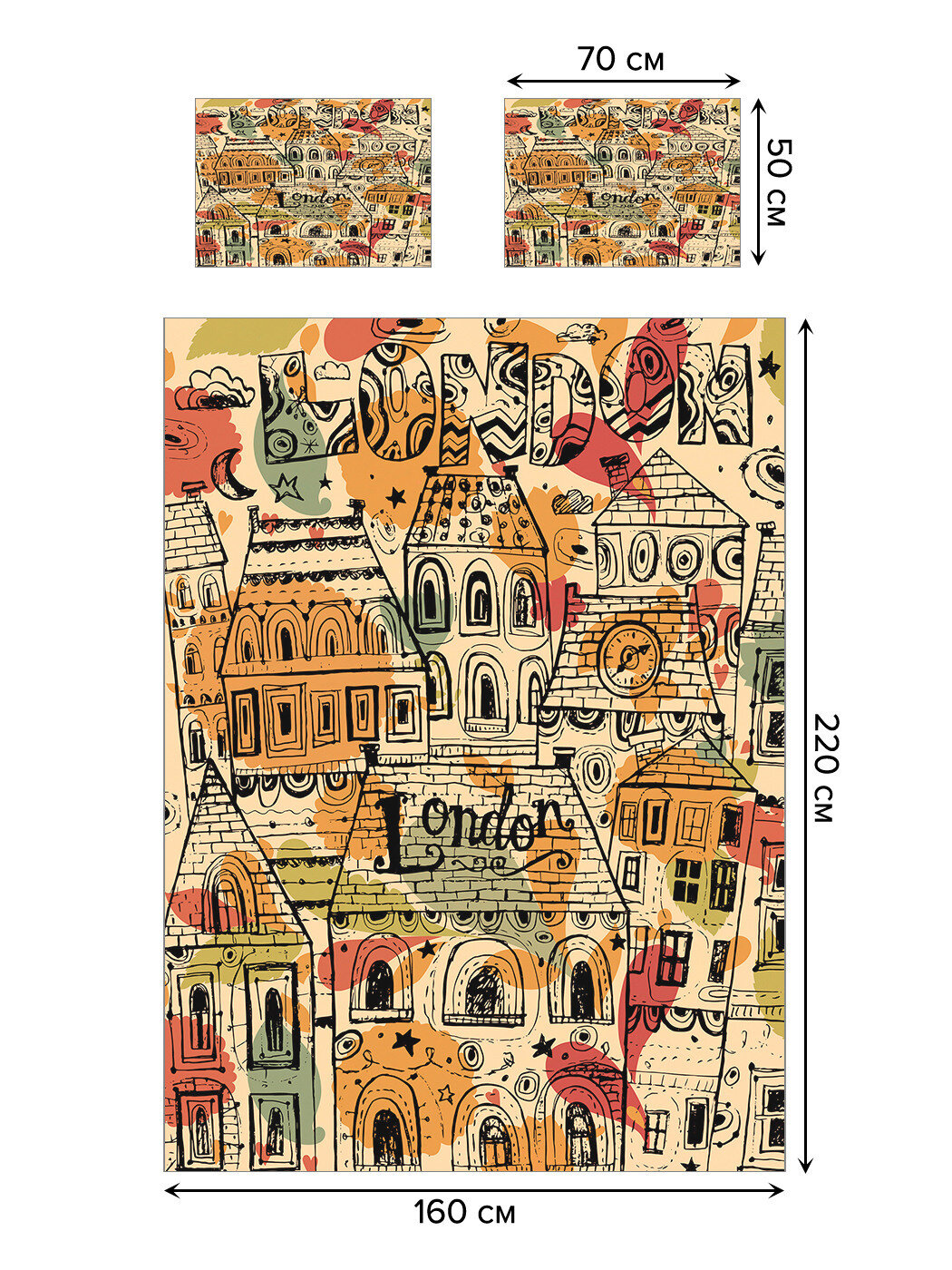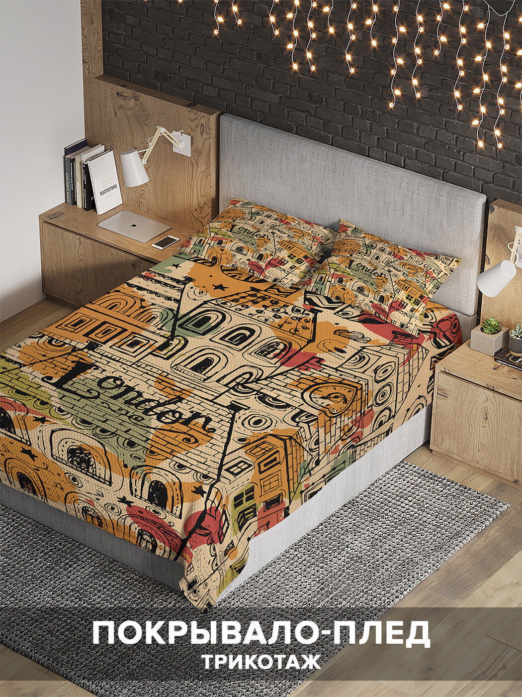 Модель: Покрывало стеганое Лондонский район 220х160 и две наволочки 70х50