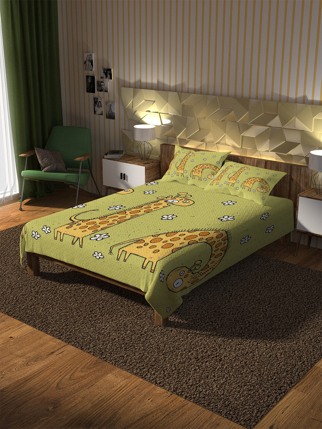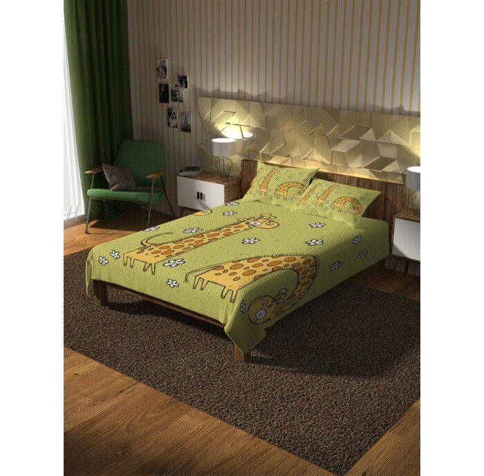 Покрывало с чехлами Ambesonne bcsl_30062 160x220 см зеленый Покрывало стеганое Три жирафа 220х160 и две наволочки 70х50 (размер: 1.5-спальный)