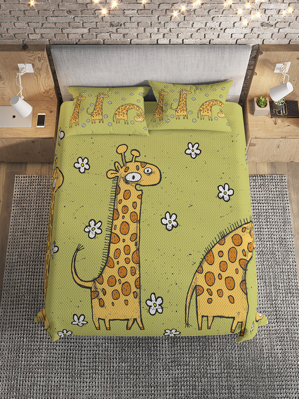 Модель: Покрывало стеганое Три жирафа 220х160 и две наволочки 70х50