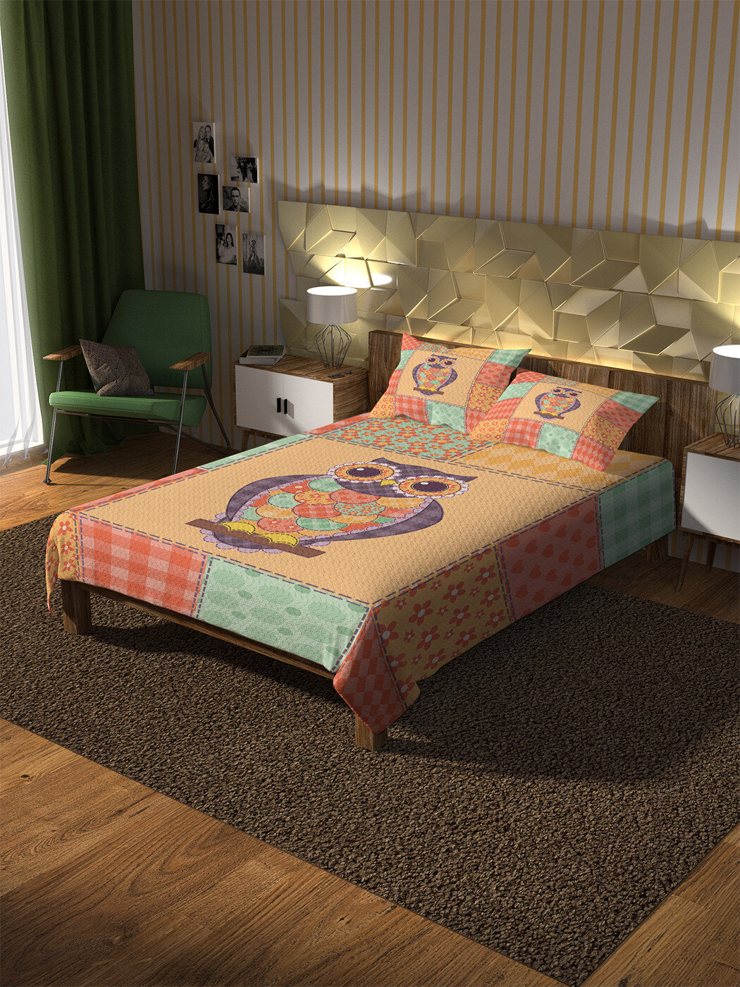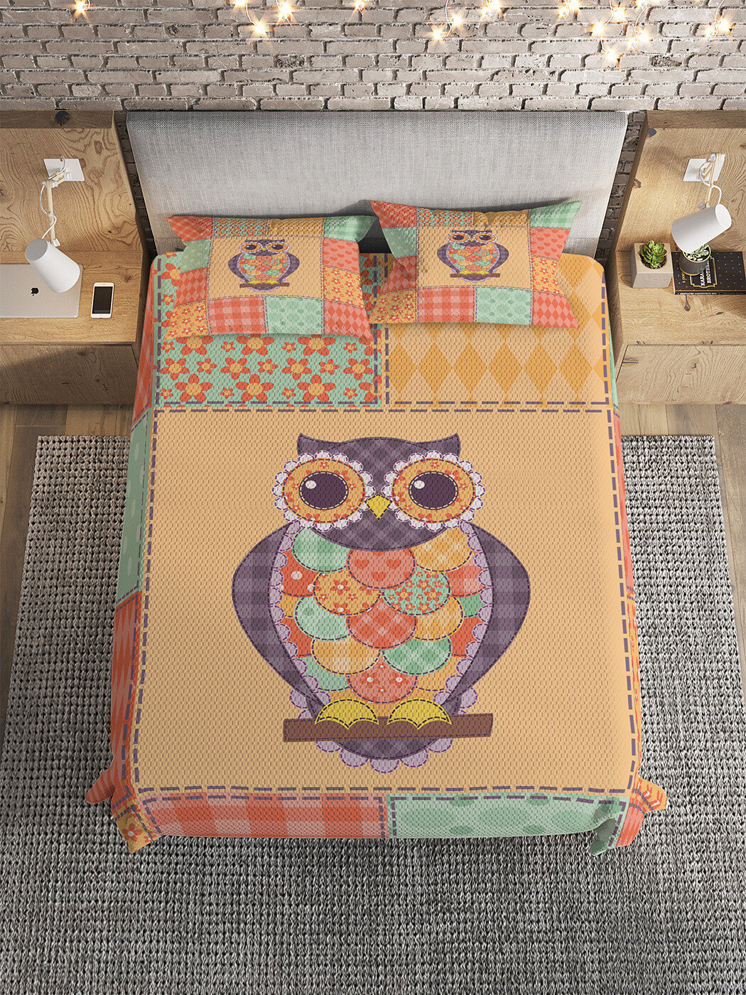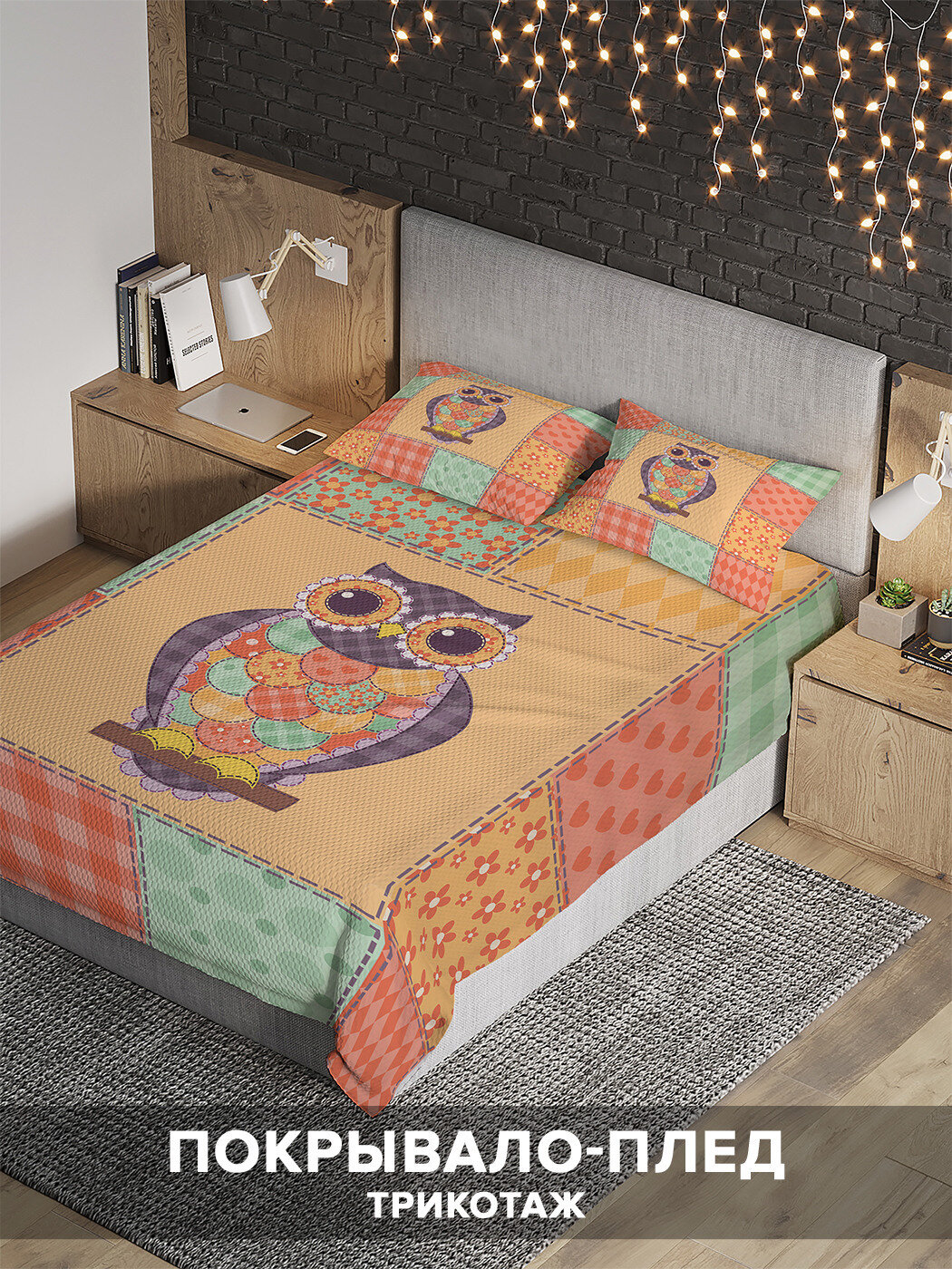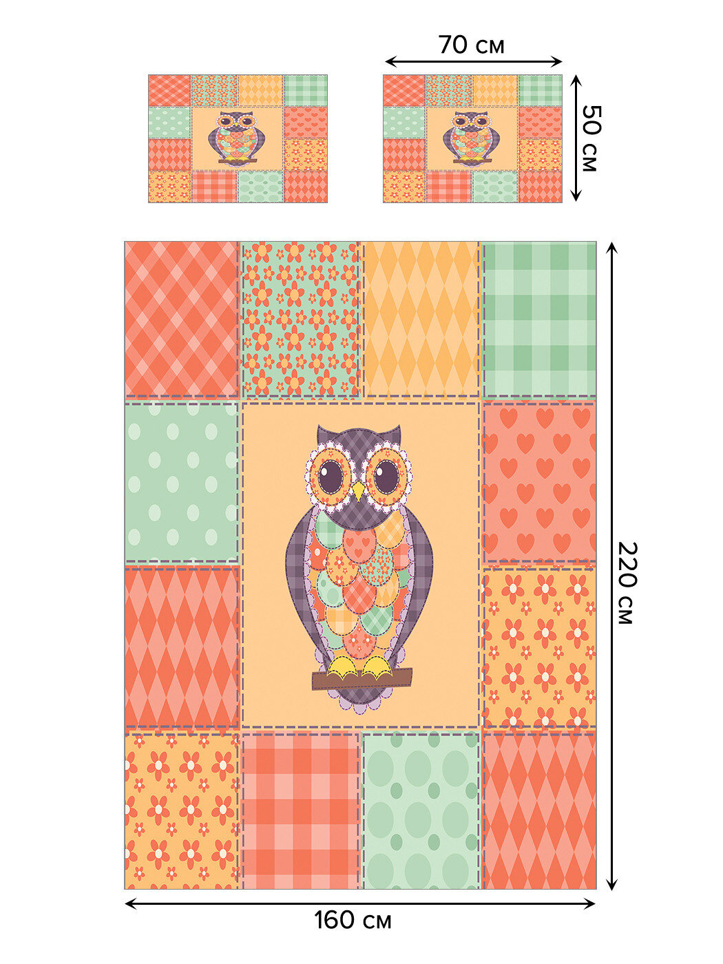 Модель: Покрывало стеганое Сова в стиле пэчворк 220х160 и две наволочки 70х50