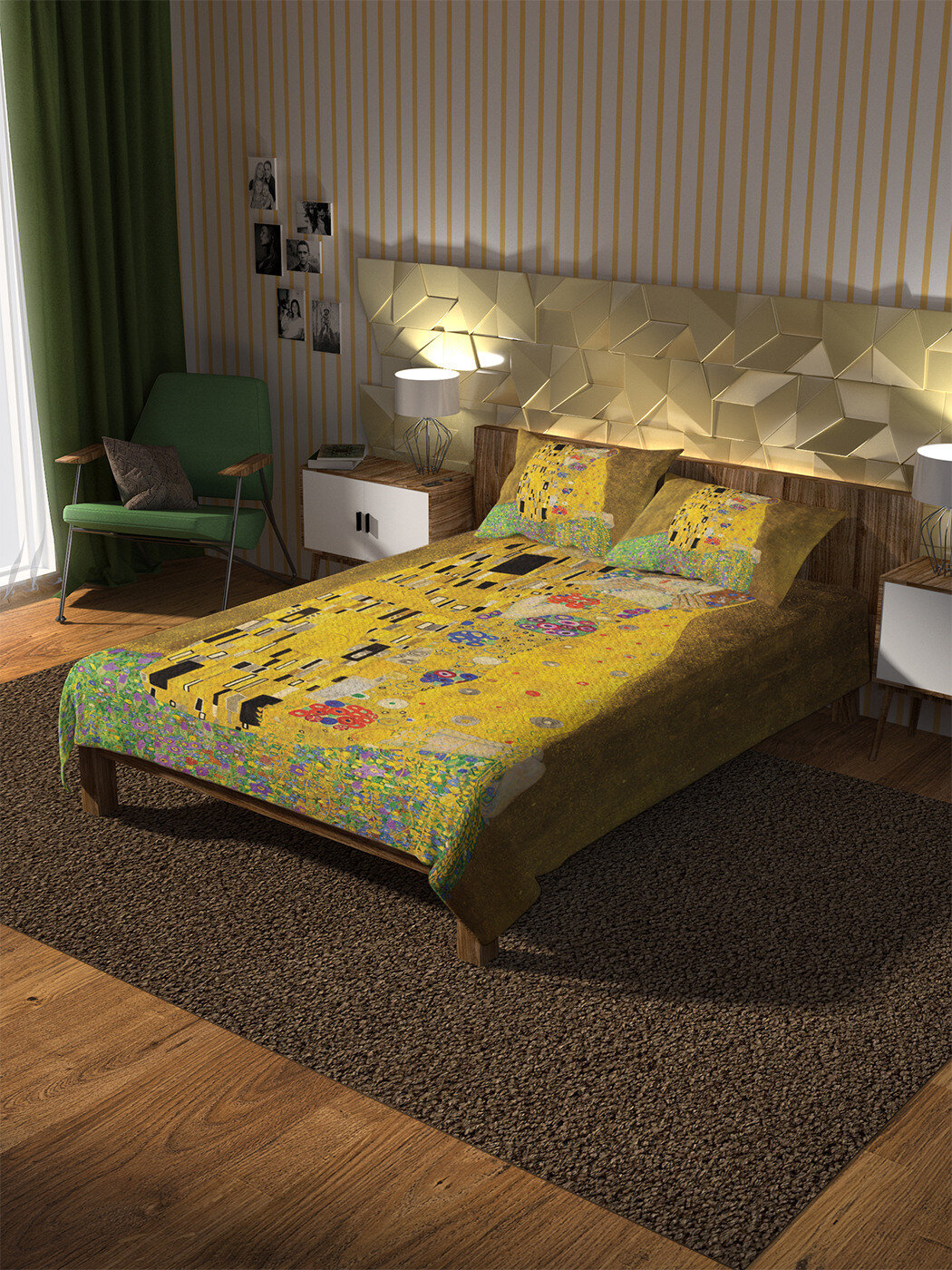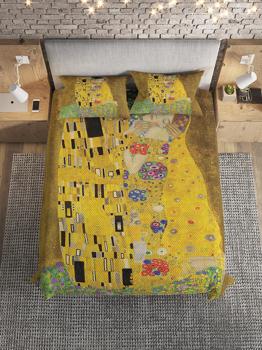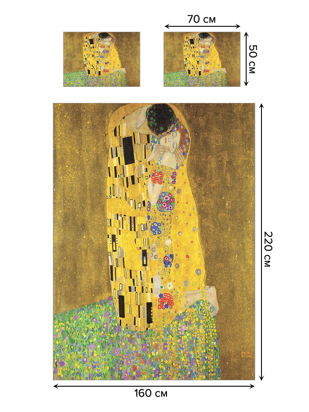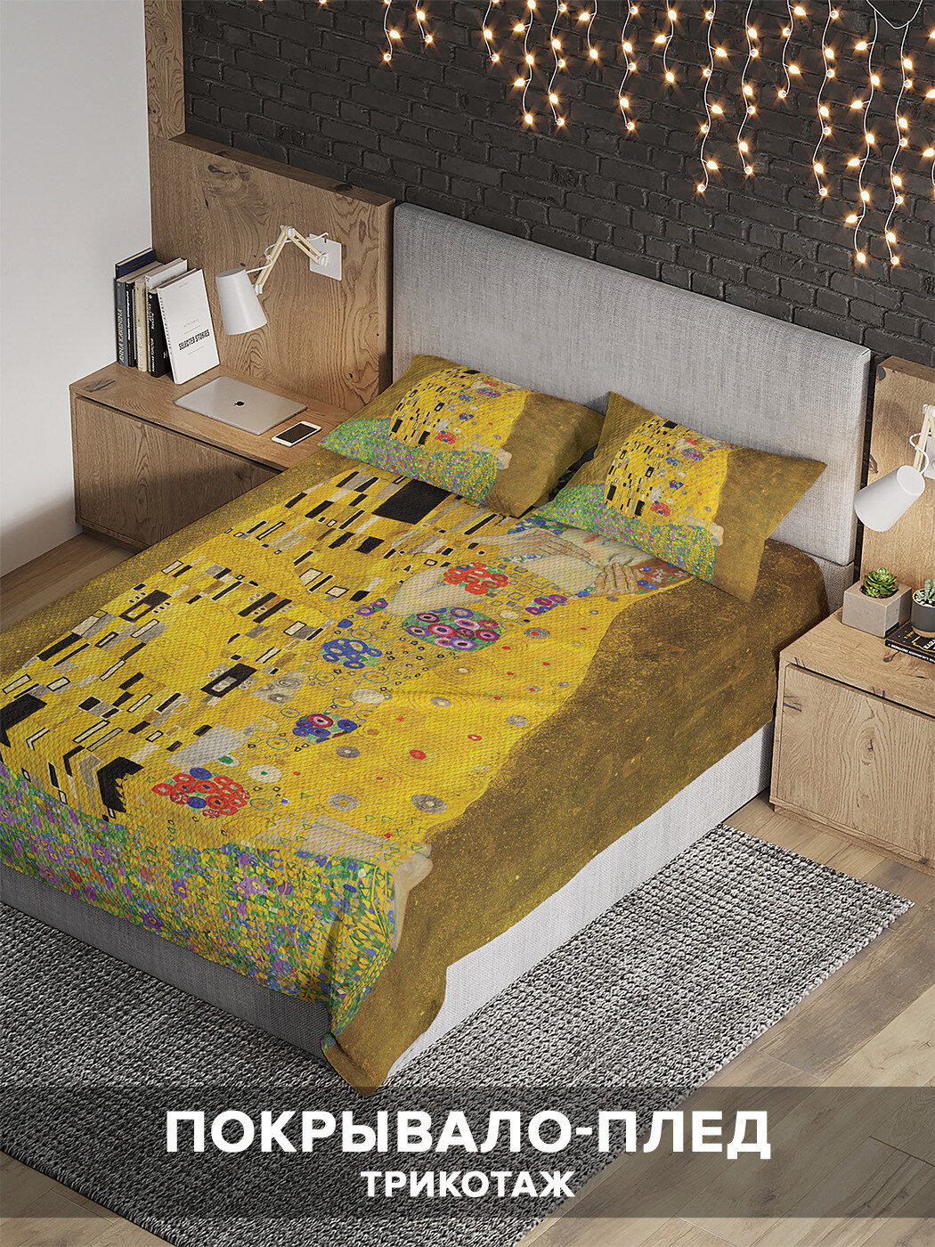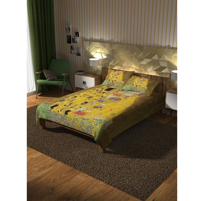 Модель: Покрывало стеганое Густав Климт Поцелуй 220х160 и две наволочки 70х50