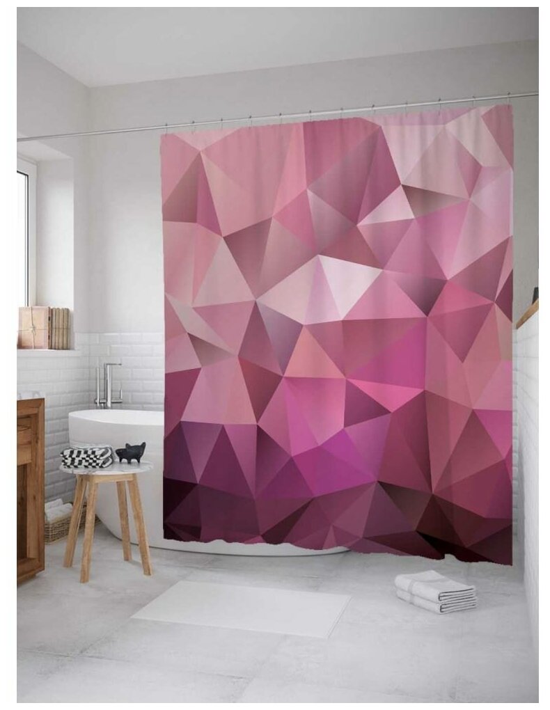 Шторка-занавеска для ванной JOYARTY Штора занавеска из сатена с крючками Геометрические холмы 200х180 см (размер: 180х200)