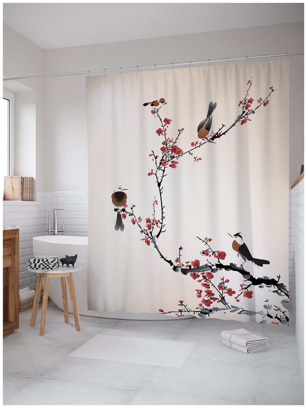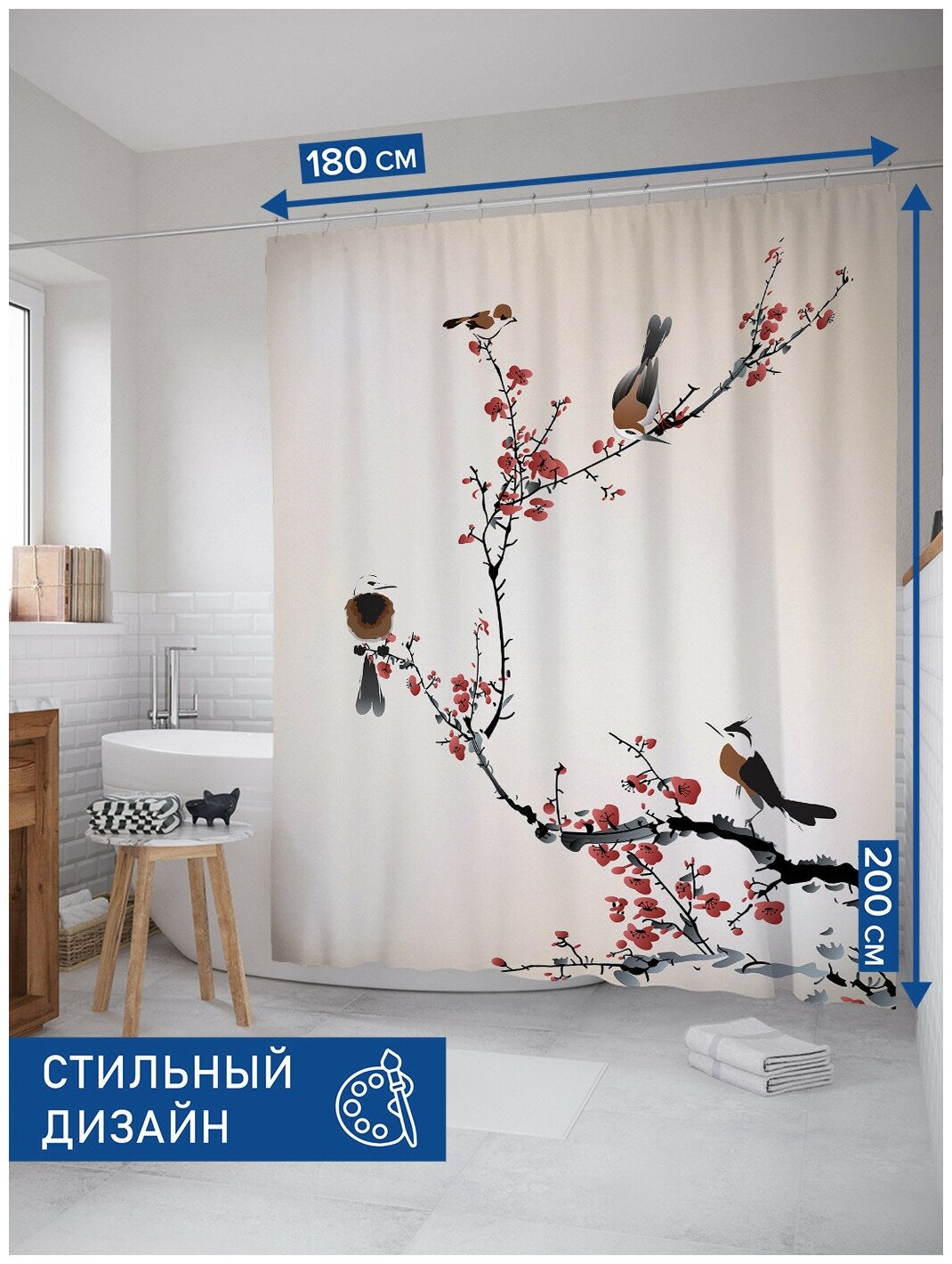 Шторка-занавеска для ванной JOYARTY Штора занавеска из сатена с крючками Компания птиц 200х180 см (размер: 180х200)