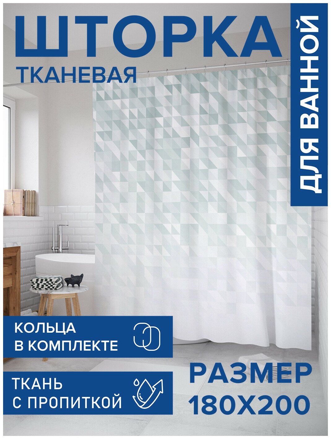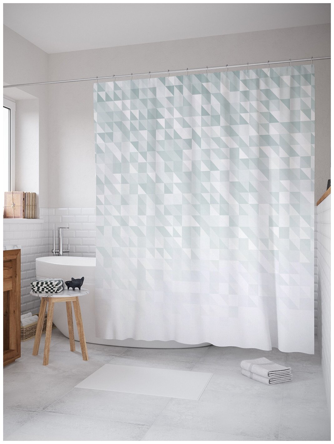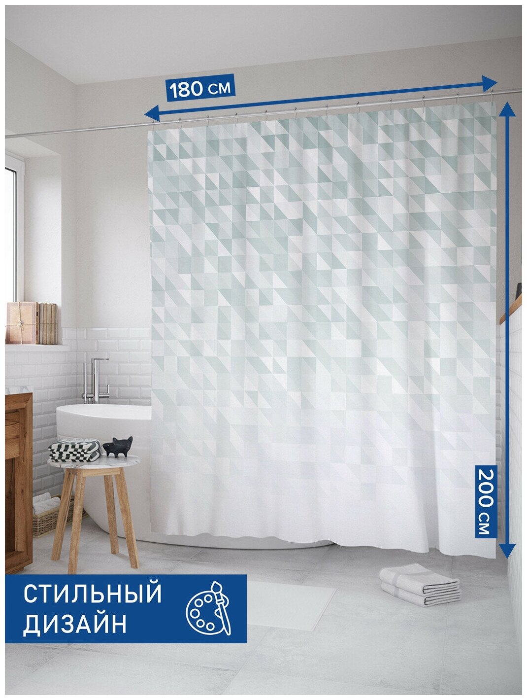 Шторка-занавеска для ванной JOYARTY Штора занавеска из сатена с крючками Треугольные переходы 200х180 см (размер: 180х200)
