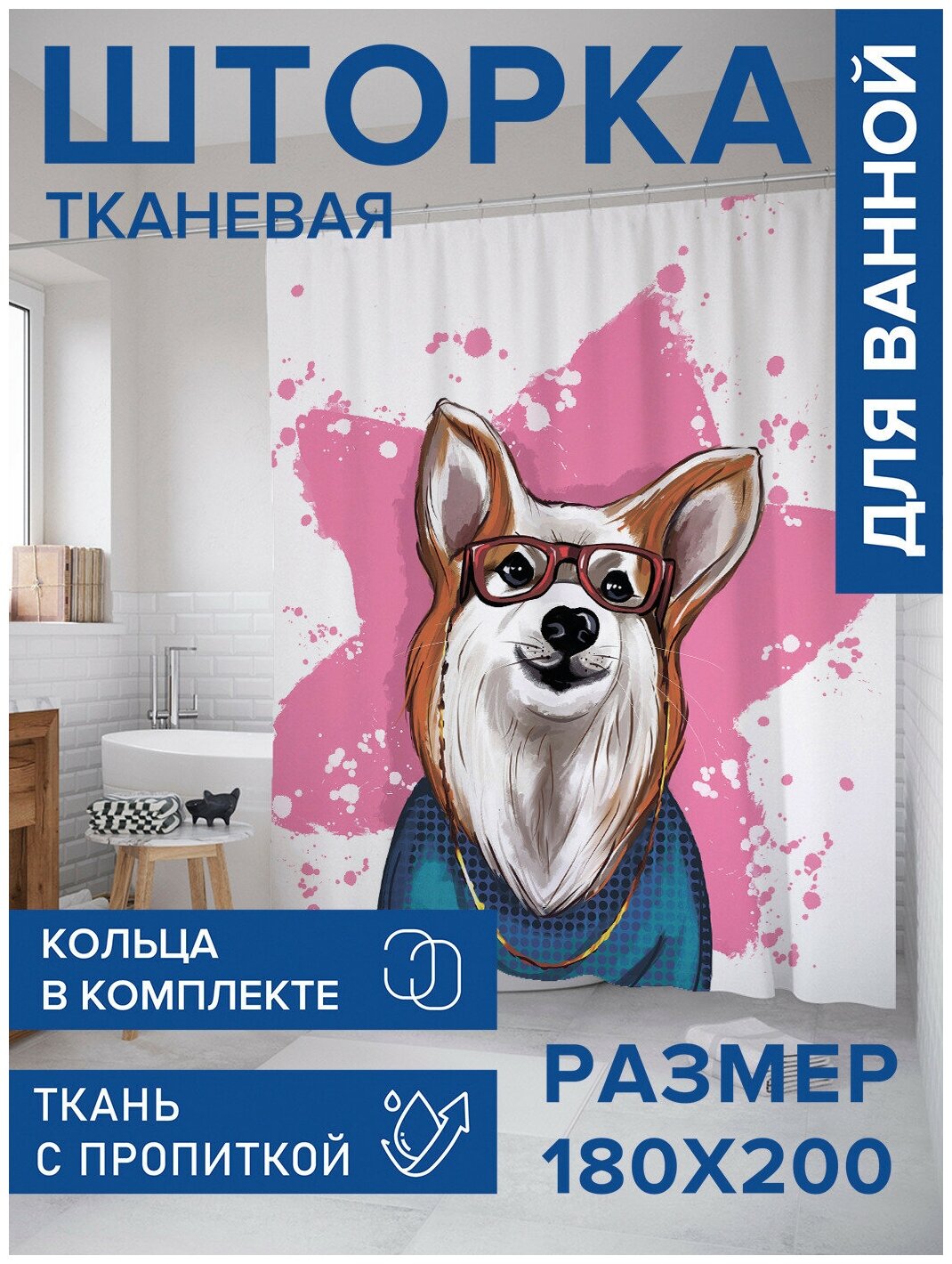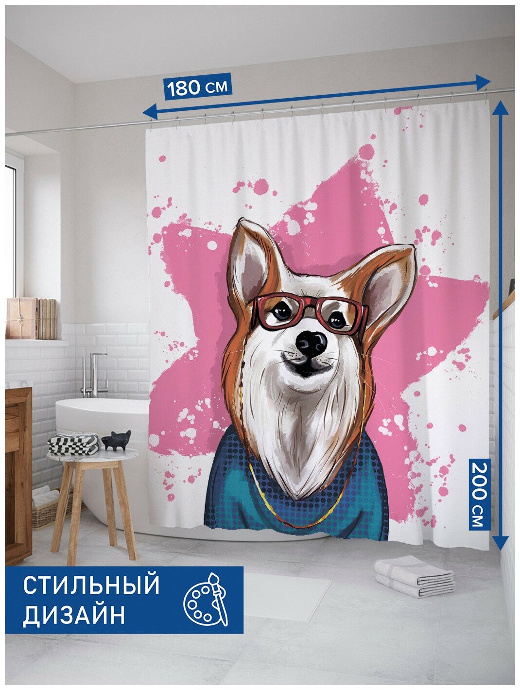 Шторка-занавеска для ванной JOYARTY Штора занавеска из сатена с крючками Стильный корги 200х180 см (размер: 180х200)
