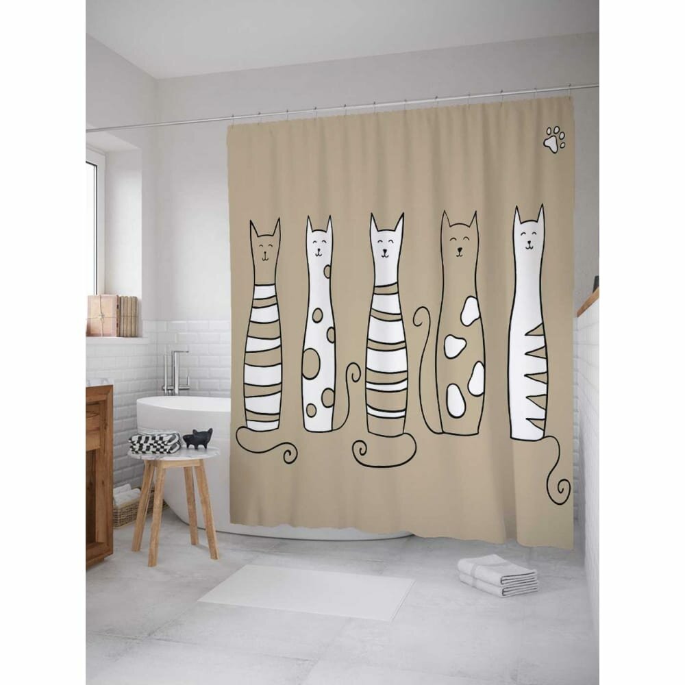 Шторка-занавеска для ванной JOYARTY Штора занавеска из сатена с крючками Добрые коты 200х180 см (размер: 180х200)