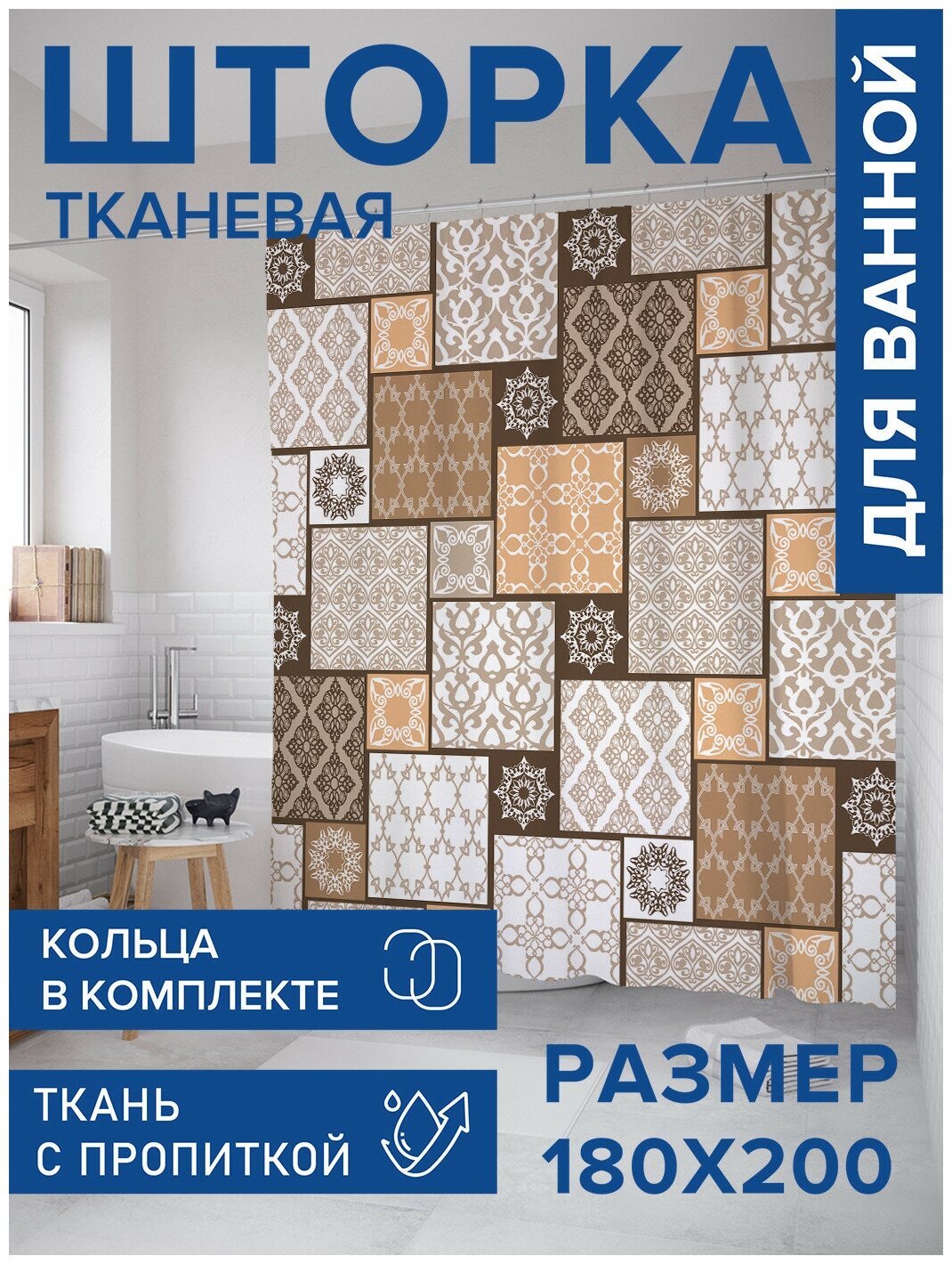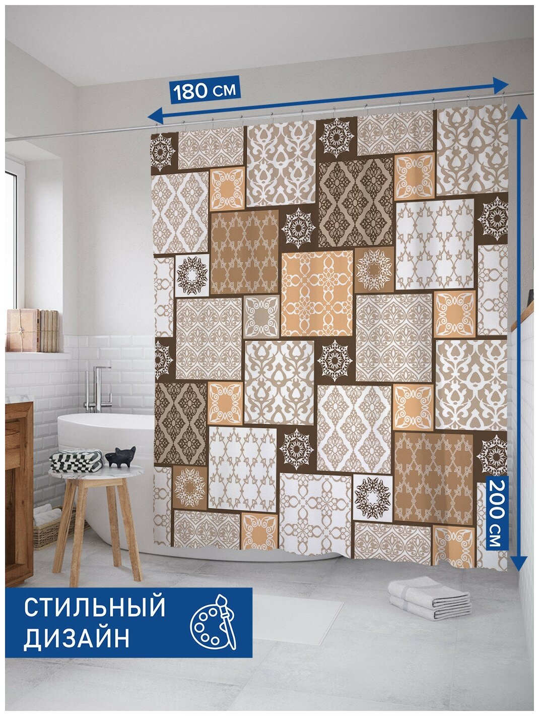 Шторка-занавеска для ванной JOYARTY Штора занавеска из сатена с крючками Плиточный креатив 200х180 см (размер: 180х200)