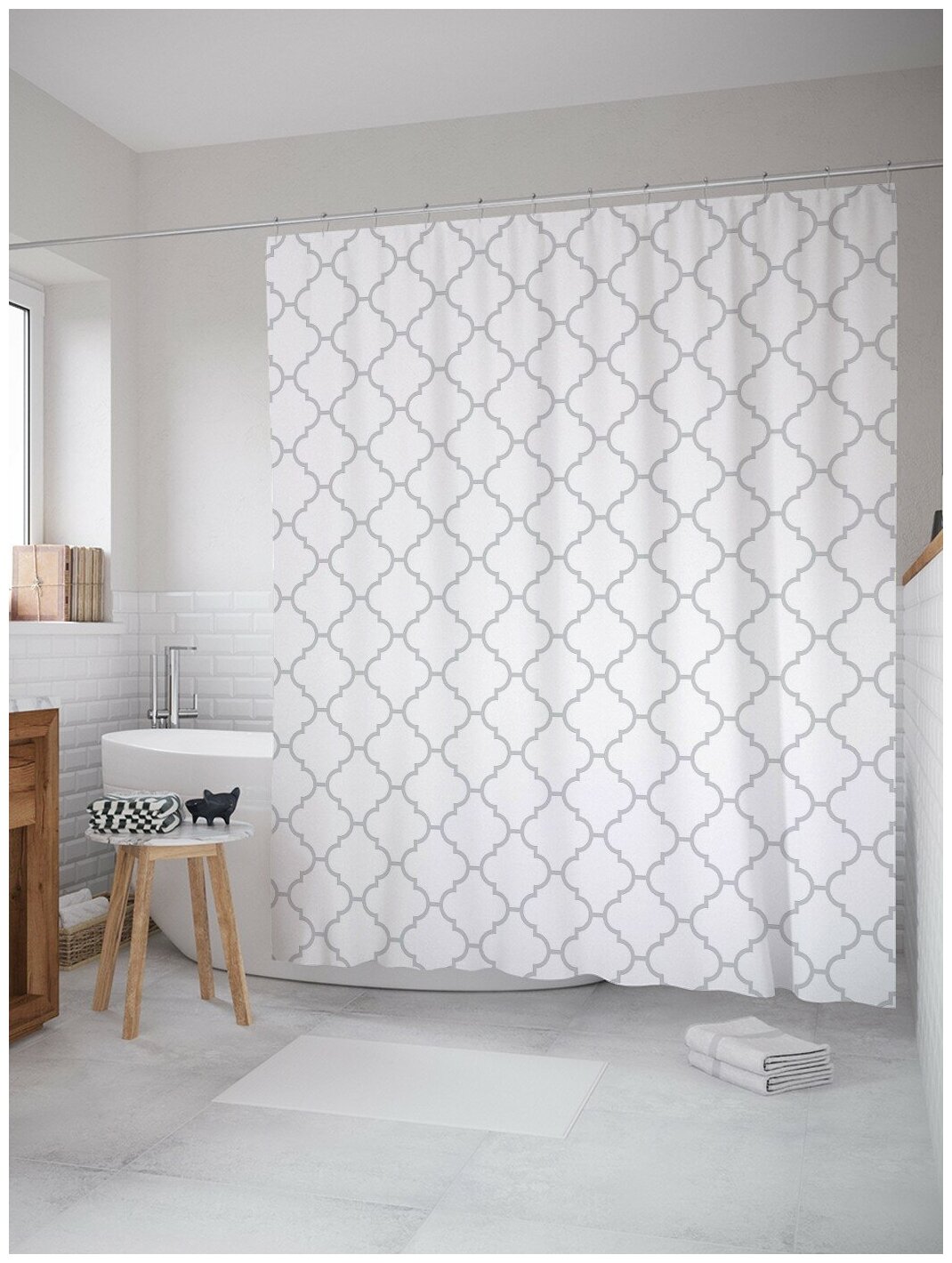 Шторка-занавеска для ванной JOYARTY Штора занавеска из сатена с крючками Классический орнамент 200х180 см (размер: 180х200)