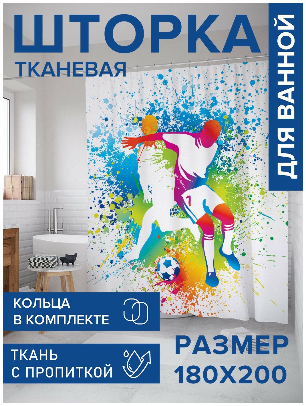Шторка-занавеска для ванной JOYARTY Штора занавеска из сатена с крючками Будущий гол 200х180 см (размер: 180х200)