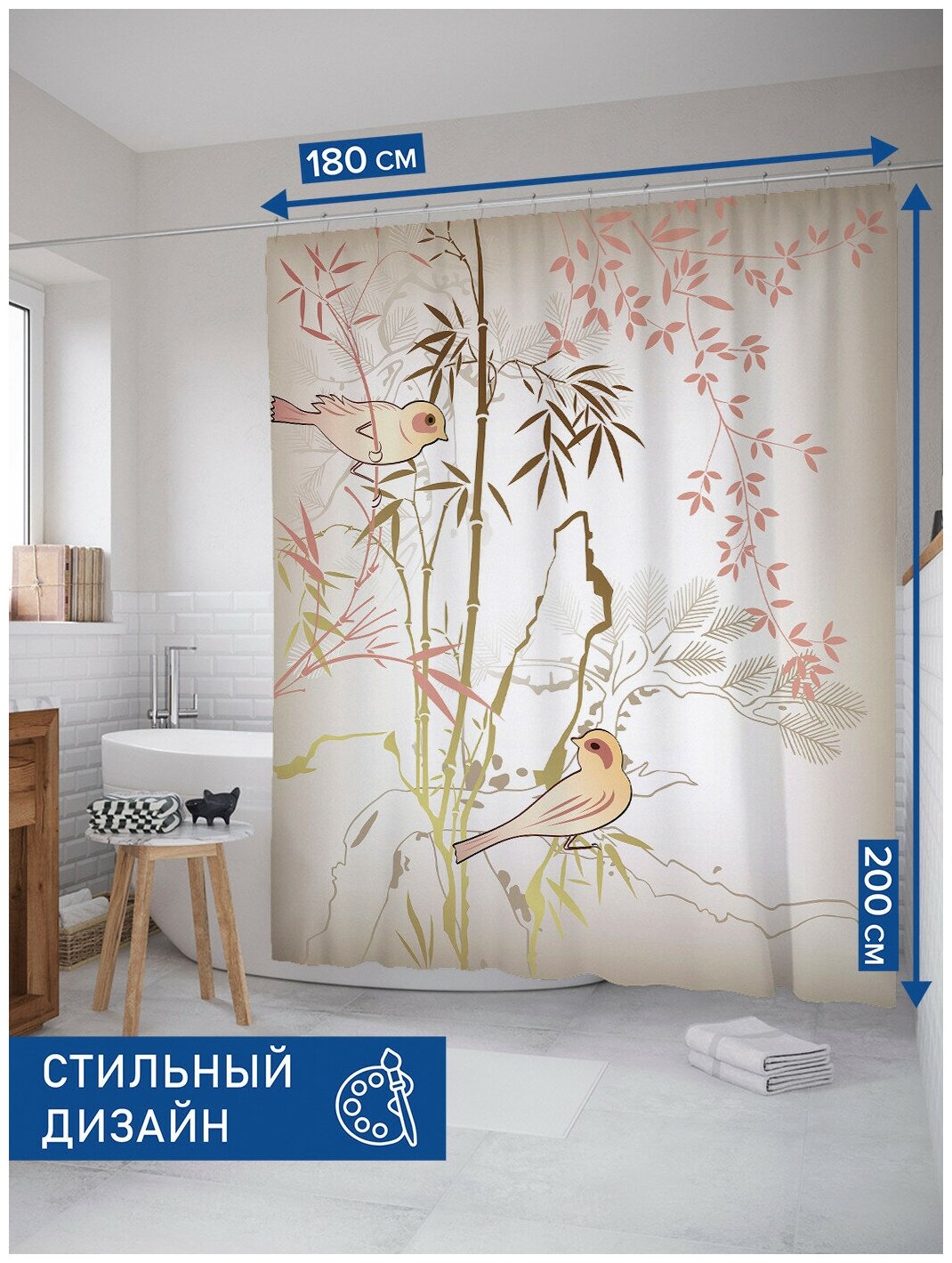 На сегодняшний день товар «Шторка-занавеска для ванной JOYARTY Штора занавеска из сатена с крючками Птицы на ветках 200х180 см (размер: 180х200)» можно купить с кешбеком в 1 магазине: Яндекс.Маркет