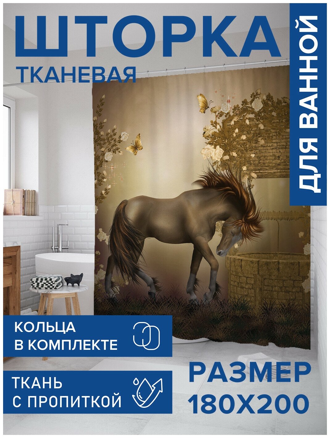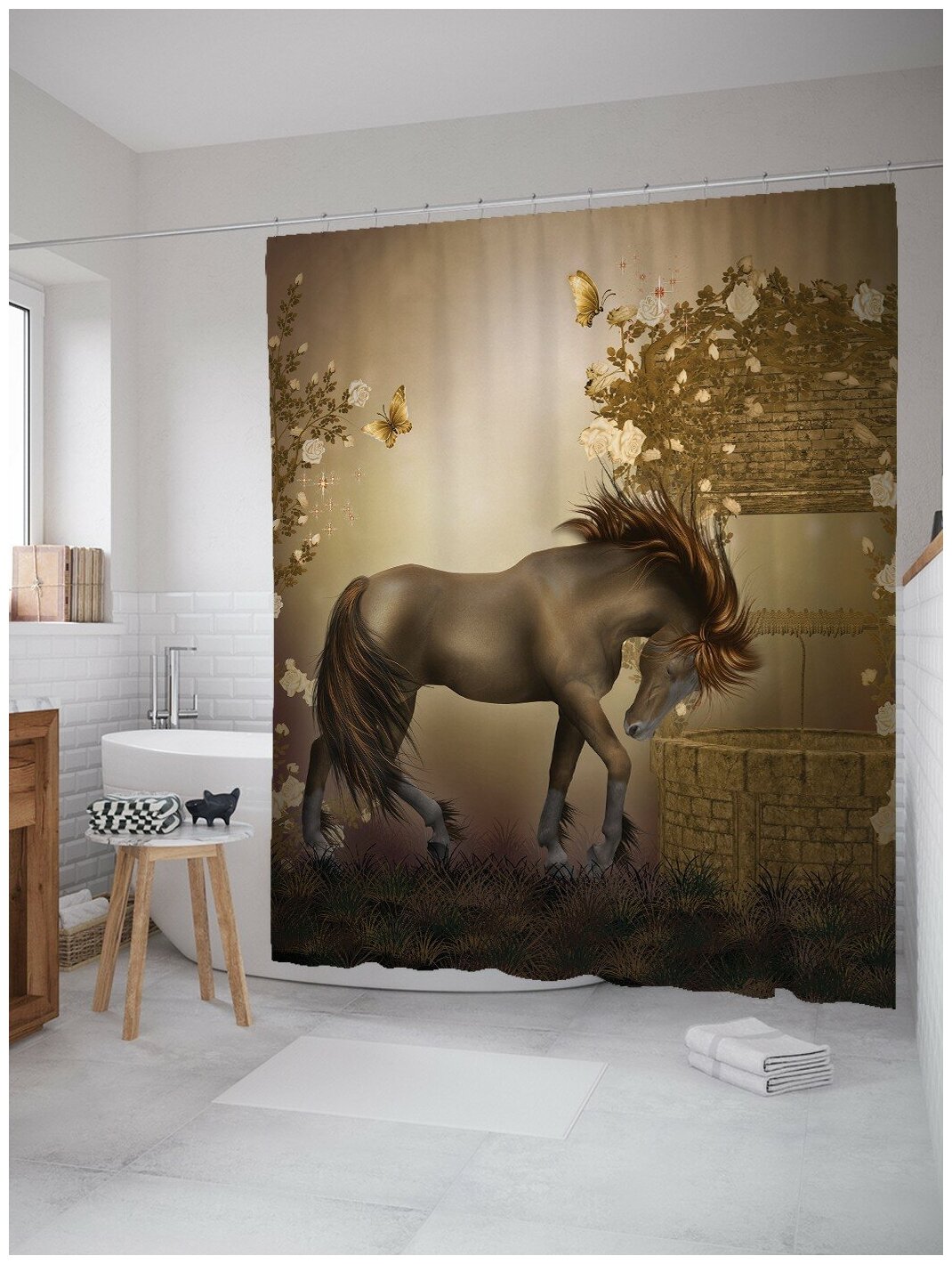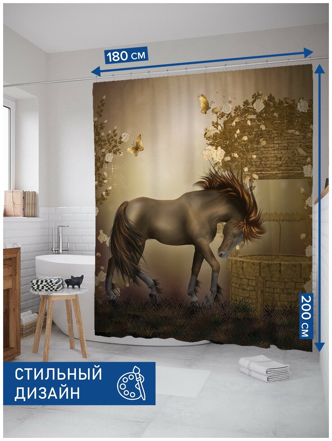 Шторка-занавеска для ванной JOYARTY Штора занавеска из сатена с крючками Задумчивая лошадь 200х180 см (размер: 180х200)