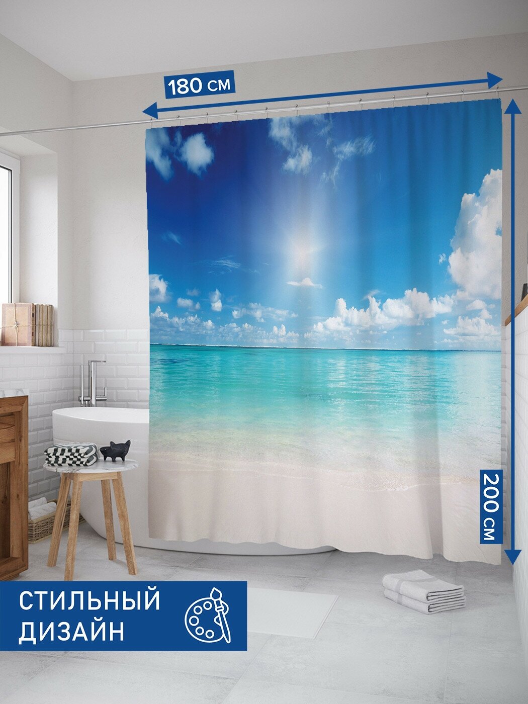 На сегодняшний день товар «Шторка-занавеска для ванной JOYARTY Штора занавеска из сатена с крючками Тихий горизонт 200х180 см (размер: 180х200)» можно купить с кешбеком в 1 магазине: Яндекс.Маркет
