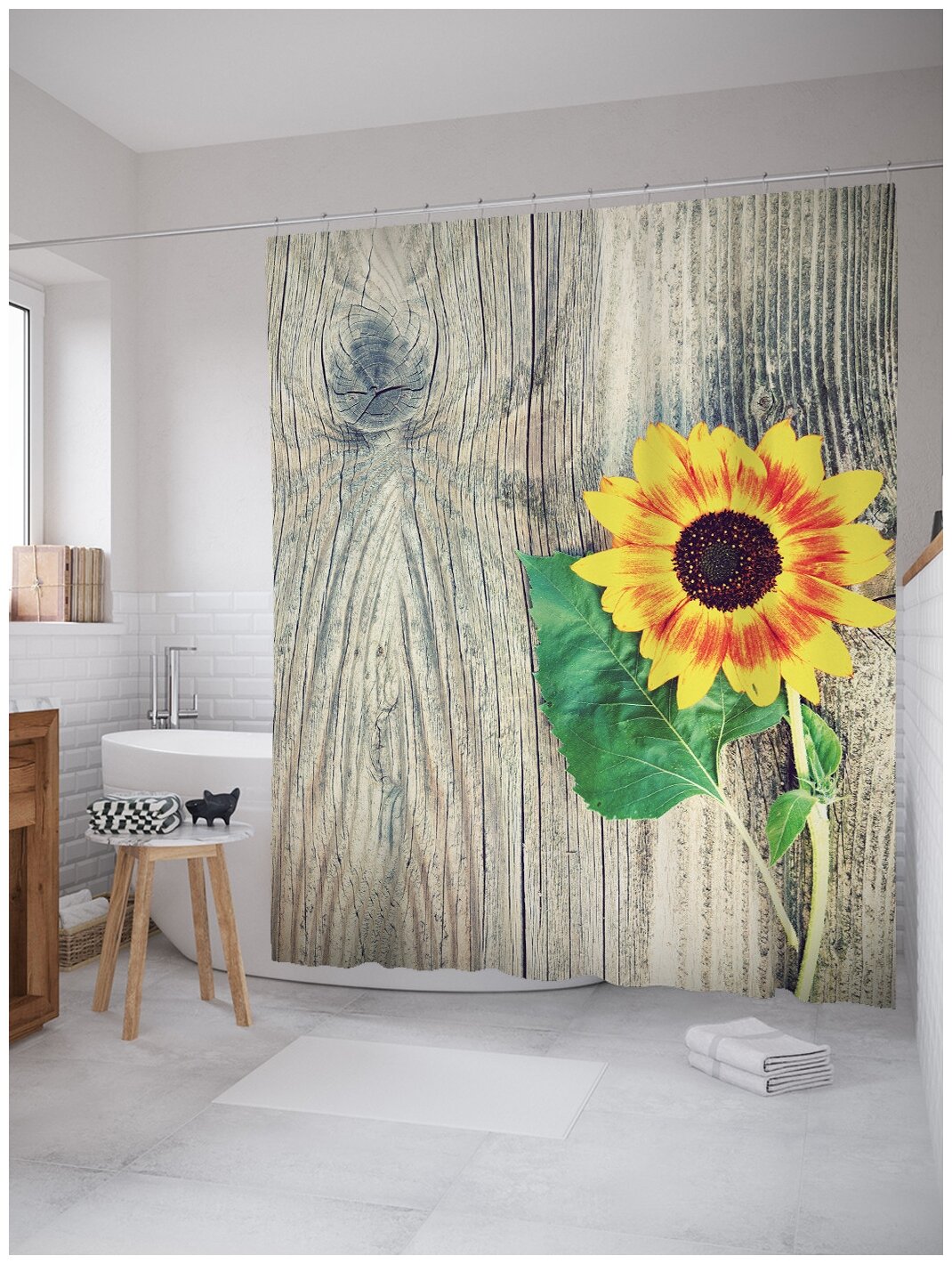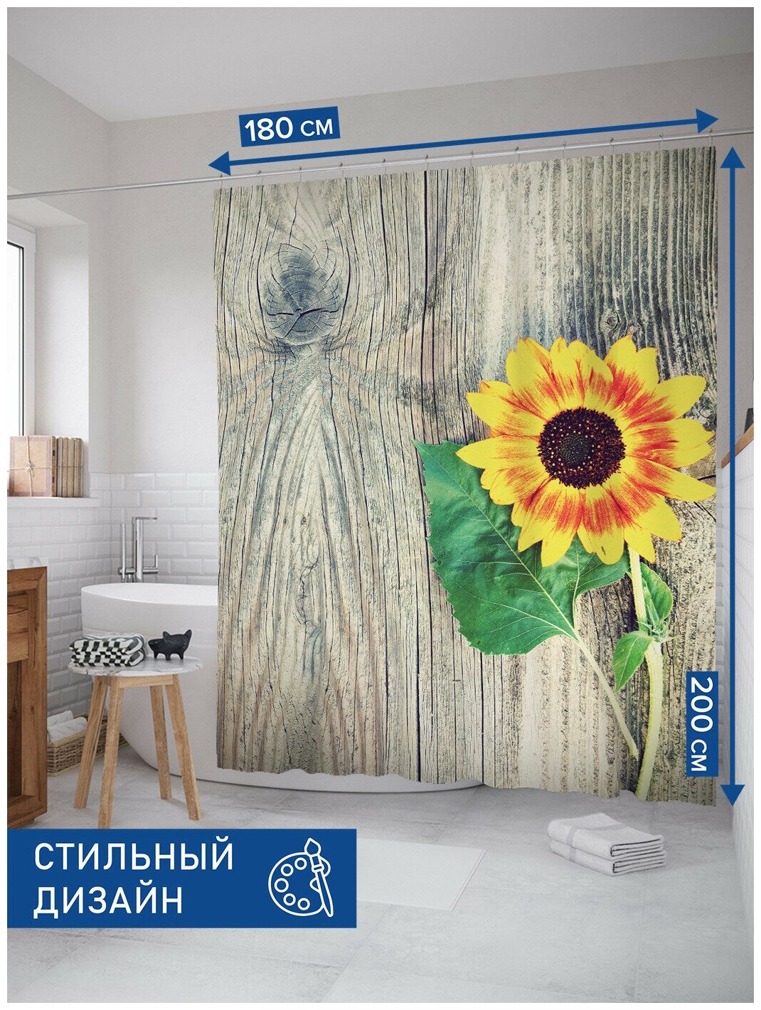 Шторка-занавеска для ванной JOYARTY Штора занавеска из сатена с крючками Одинокий подсолнух 200х180 см (размер: 180х200)