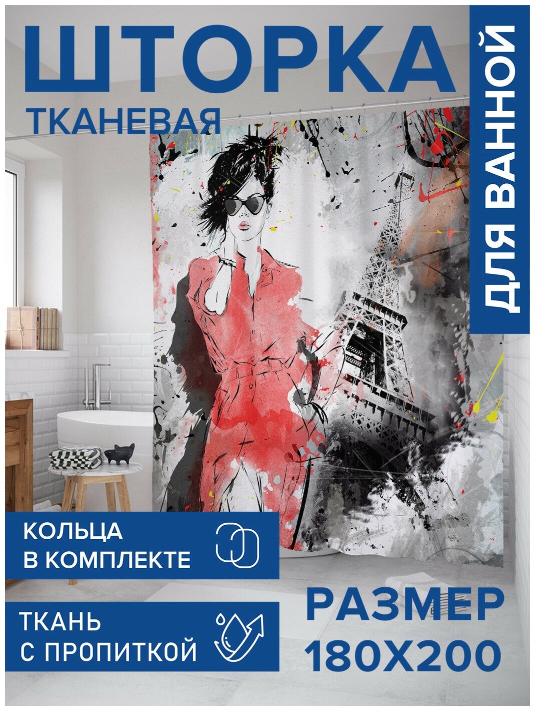 На сегодняшний день товар «Шторка-занавеска для ванной JOYARTY Штора занавеска из сатена с крючками Креативная парижская композиция 200х180 см (размер: 180х200)» можно купить с кешбеком в 1 магазине: Яндекс.Маркет