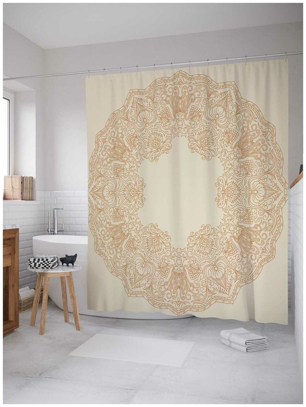 Шторка-занавеска для ванной JOYARTY Штора занавеска из сатена с крючками Круг с цветочными узорами 200х180 см (размер: 180х200)