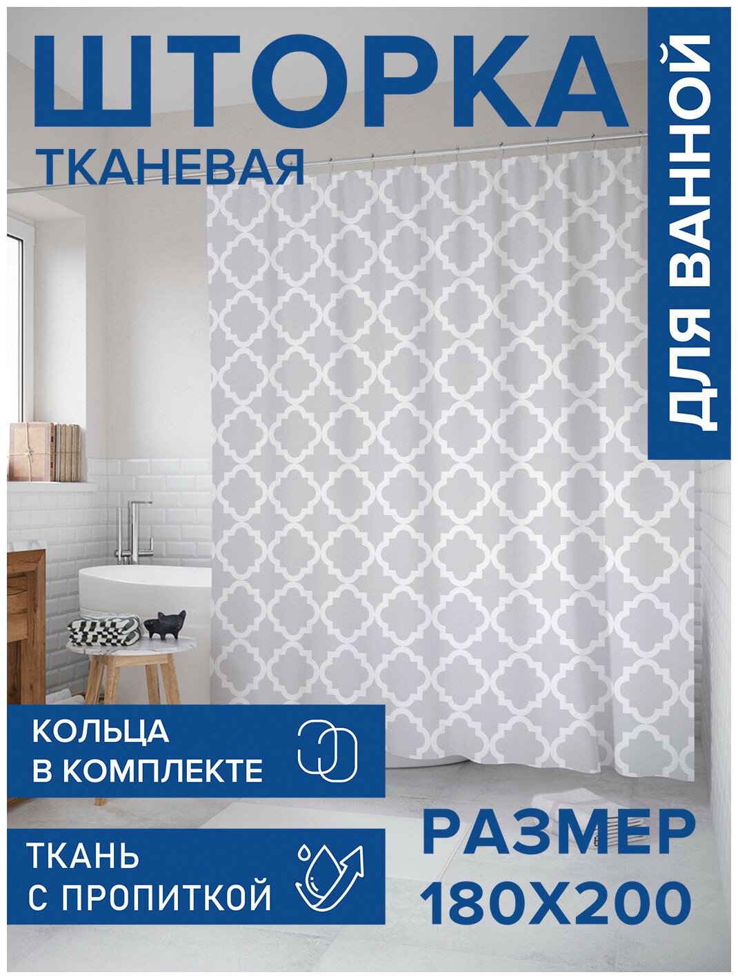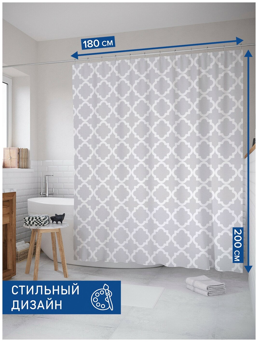 Шторка-занавеска для ванной JOYARTY Штора занавеска из сатена с крючками Простой орнамент 200х180 см (размер: 180х200)