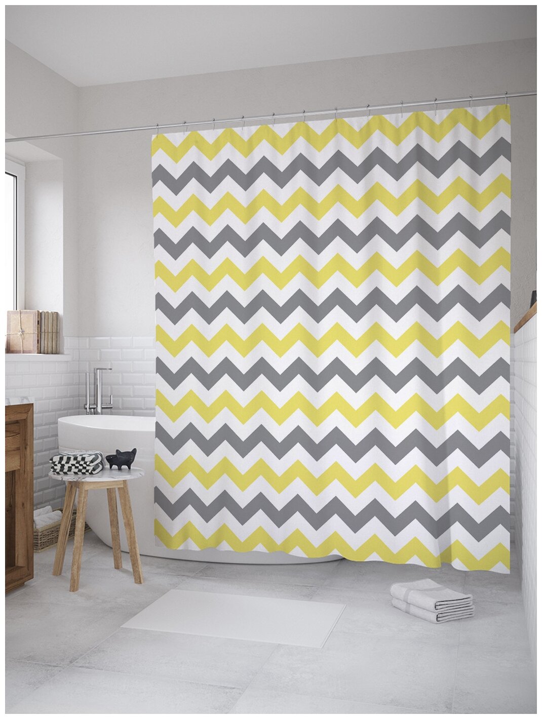 Шторка-занавеска для ванной JOYARTY Штора занавеска из сатена с крючками Красочные зигзаги 200х180 см (размер: 180х200)