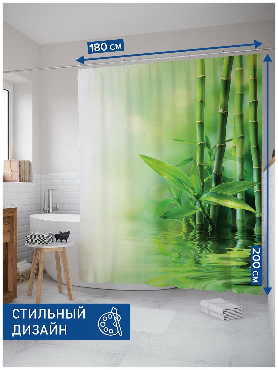 Шторка-занавеска для ванной JOYARTY Штора занавеска из сатена с крючками Бамбук у воды 200х180 см (размер: 180х200)