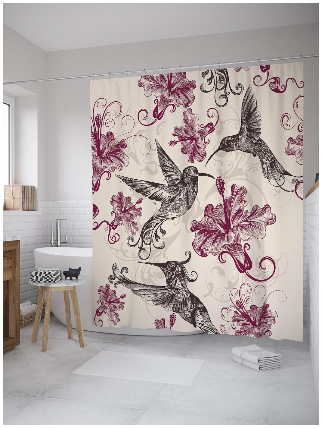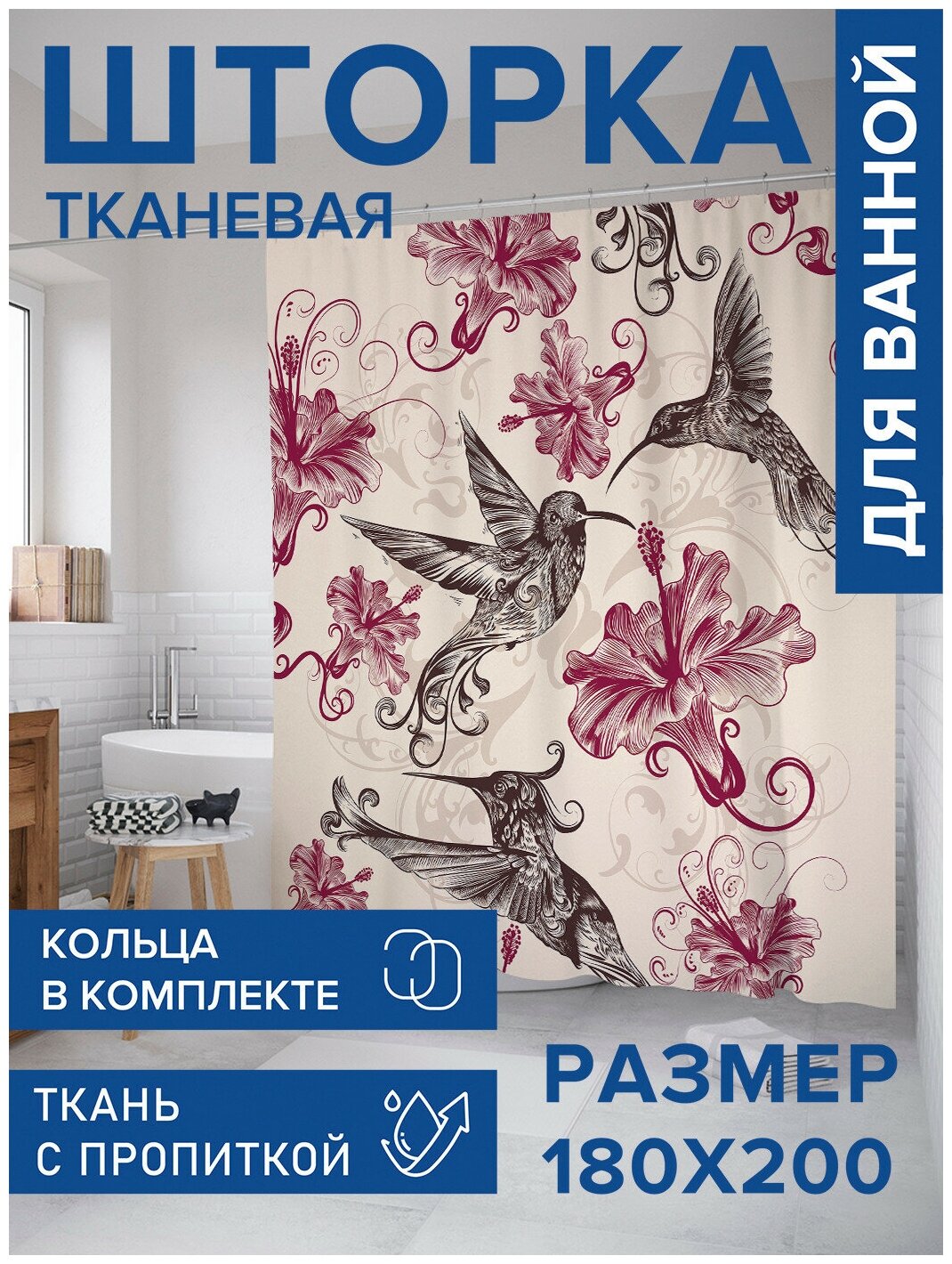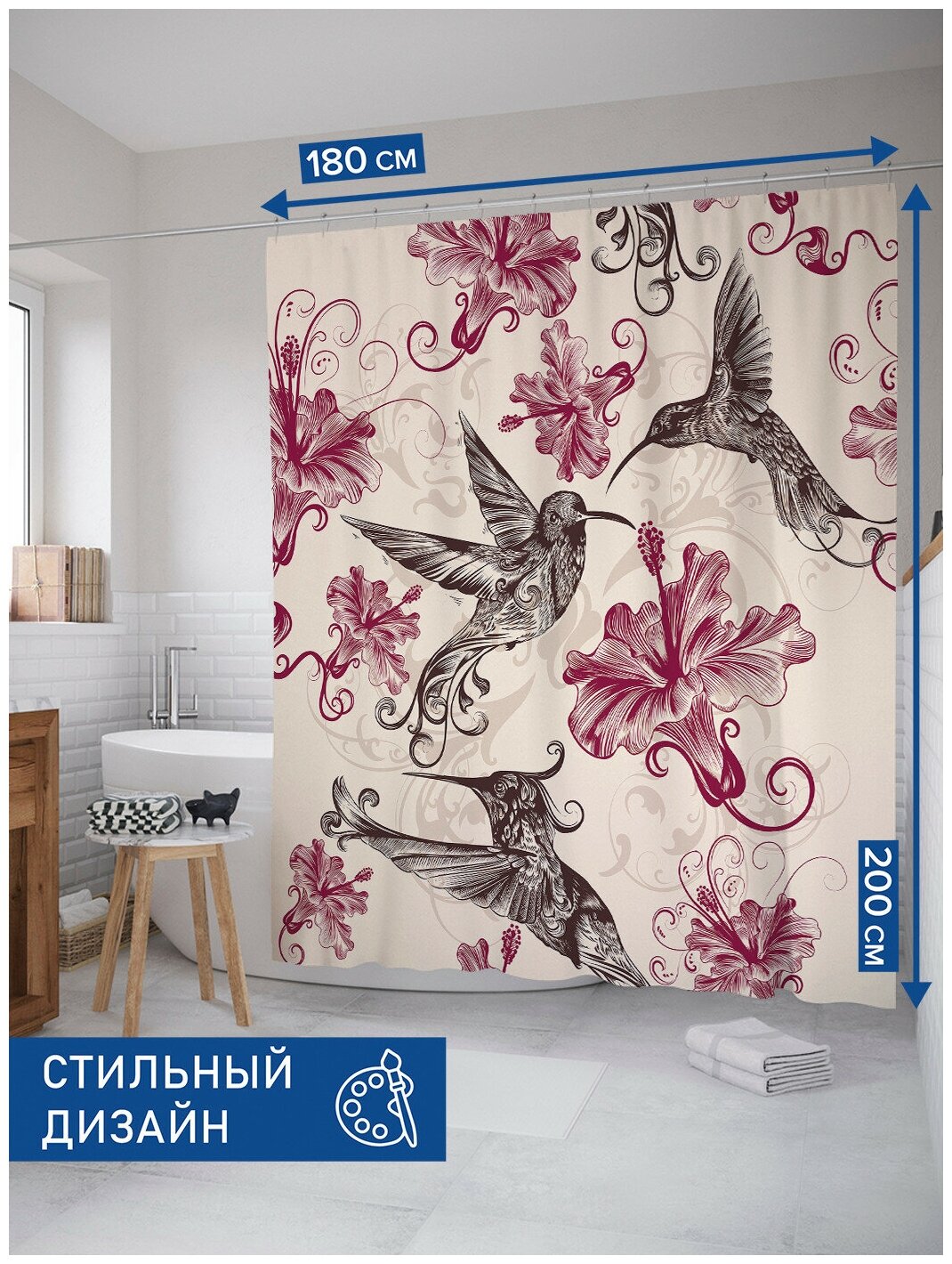 Шторка-занавеска для ванной JOYARTY Штора занавеска из сатена с крючками Колибри в работе 200х180 см (размер: 180х200)