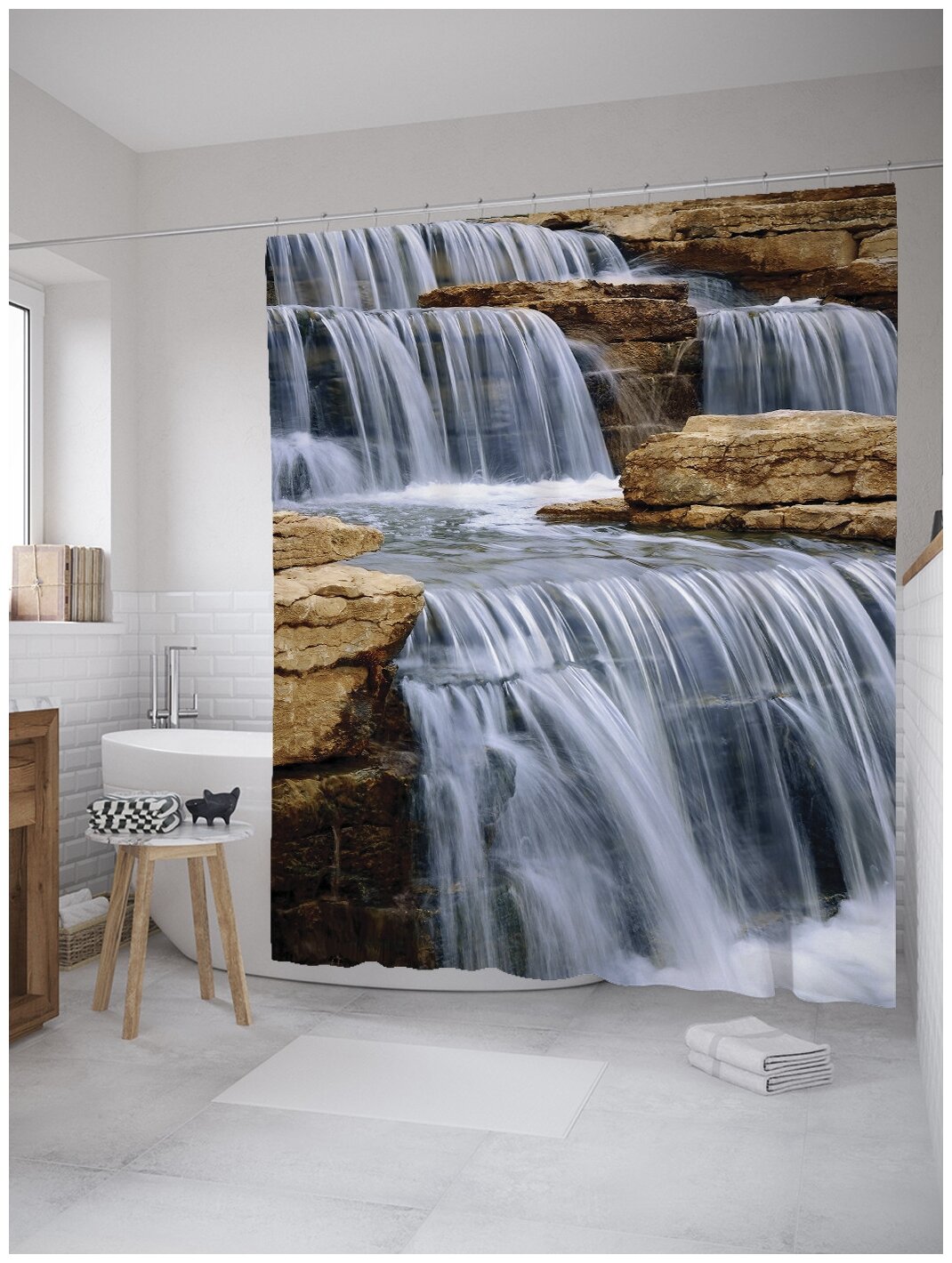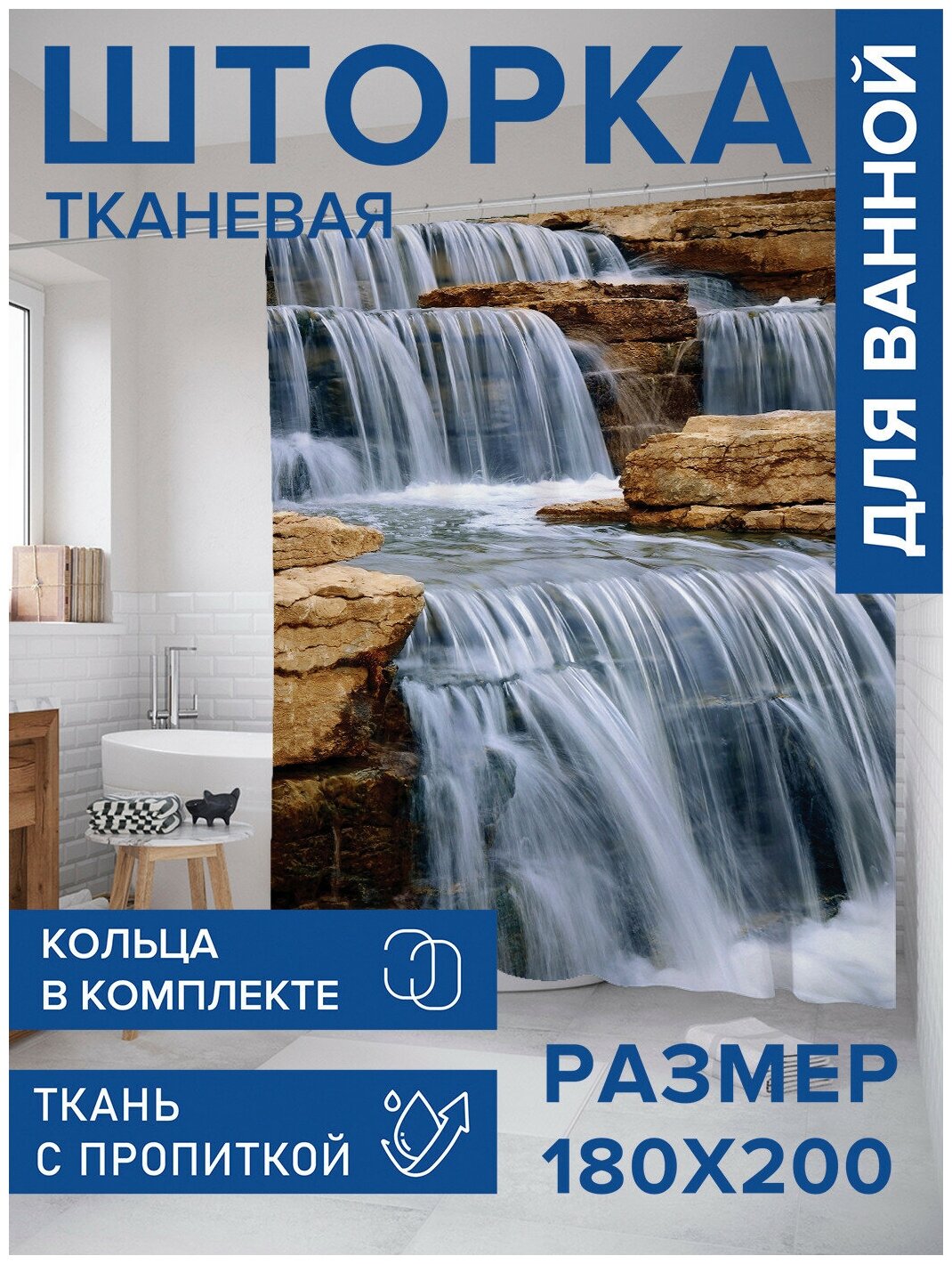 Шторка-занавеска для ванной JOYARTY Штора занавеска из сатена с крючками Каменный водопад 200х180 см (размер: 180х200)