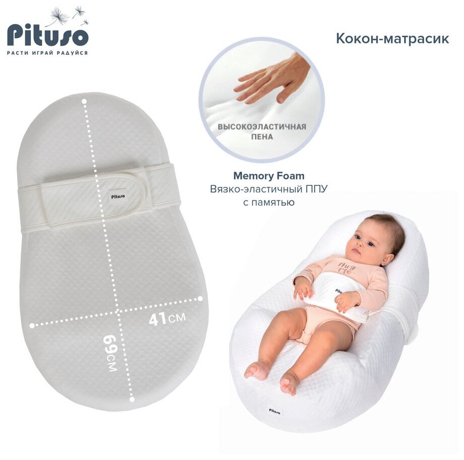 Кокон-матрасик для новорожденного.Только появившийся на свет младенец в таком матрасике "коконе" словно "обнят" со всех сторон, как в животике у мамы. Привыкание к новой, незнакомой среде - становится более мягким и комфортным. Во время бодрствования - дает малышу возможность активно шевелить ручками и ножками, изучая окружающий мир. К тому же — в матрасике "коконе" младенца не только легко переносить из комнаты в комнату, но и удобно нежно баюкать или кормить.