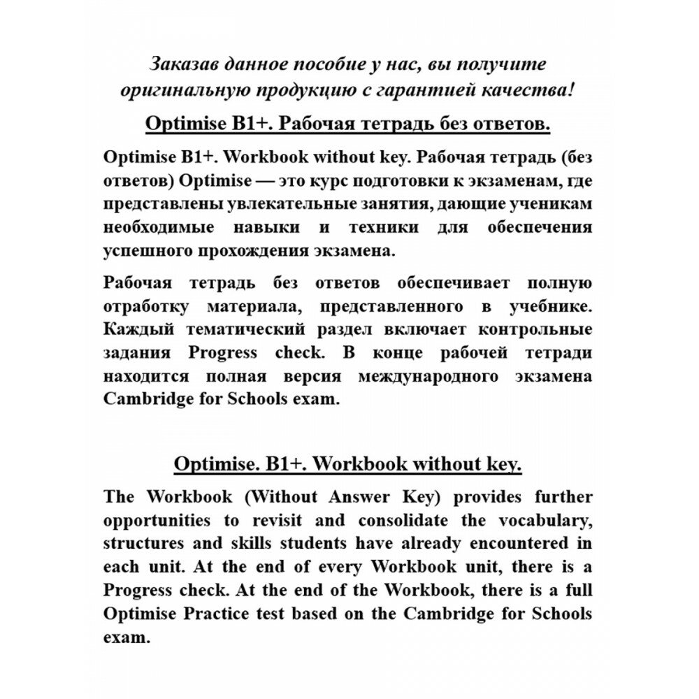 Сервис сравнения цен СкидкаГИД предлагает сравнить цены на товар «Книга: Optimise B1+. Workbook without Key (Reilly Patricia, Bandis Angela); Macmillan Education, 2017»