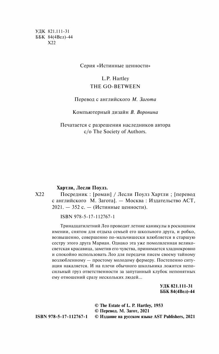 Книга: Посредник (Лесли Поулс Хартли); Издательство АСТ, 1953