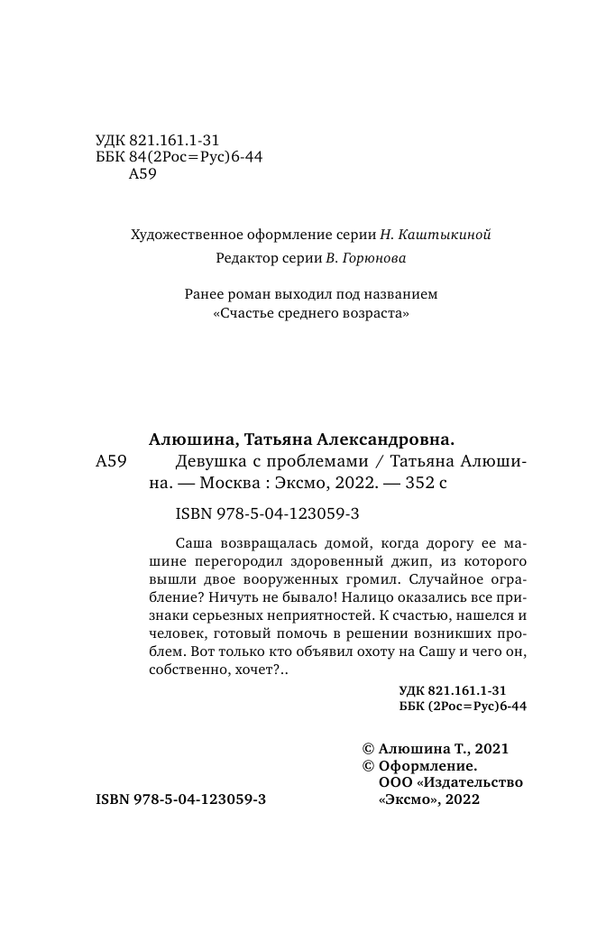 Книга: Девушка с проблемами (Алюшина Татьяна Александровна); ООО "Издательство "Эксмо", 2021