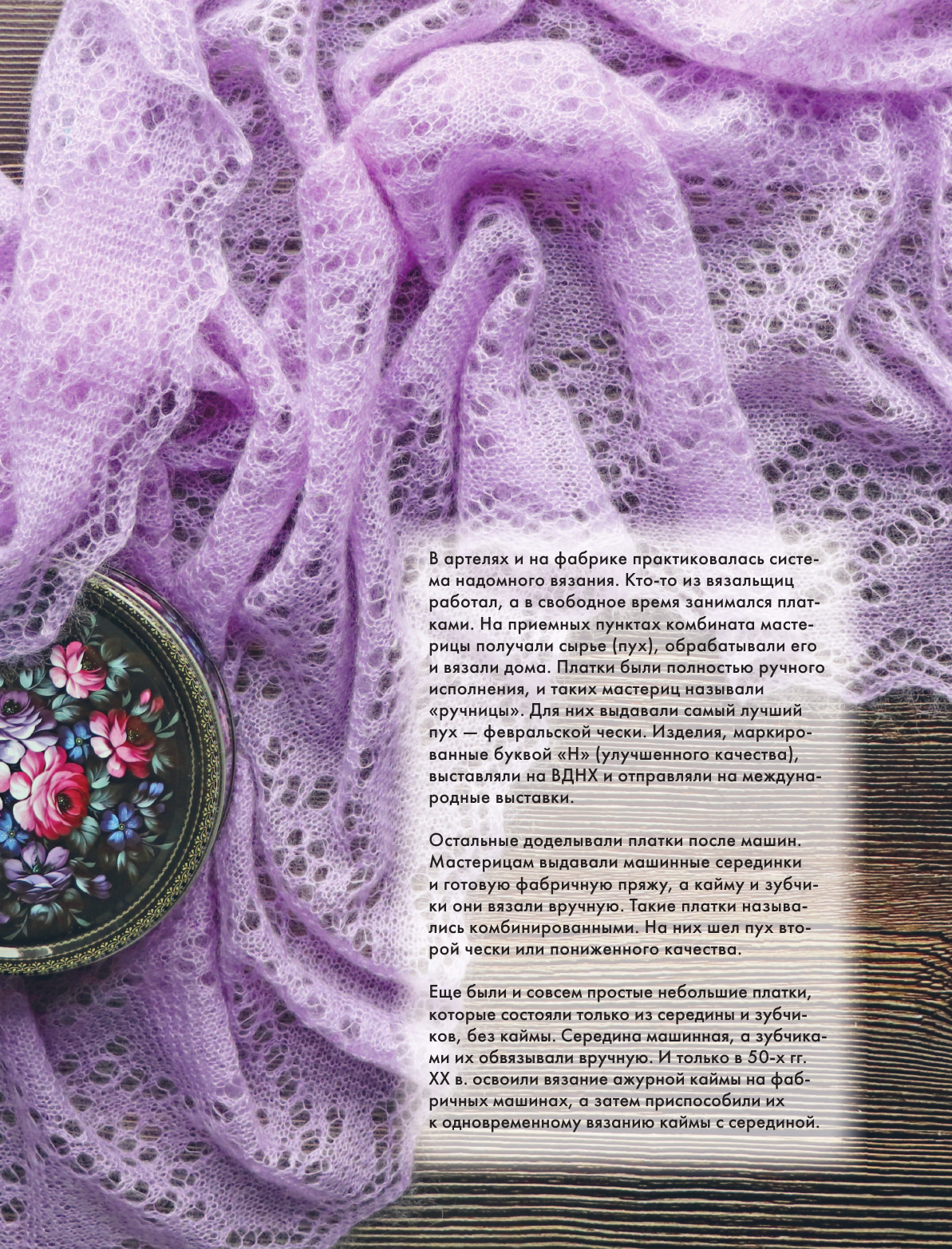 Вы узнаете об истории оренбургских ажуров, об уникальной пряже, из которой они вяжутся, об особенностях оренбургских платков и их важных характеристиках, о разнице между платком и паутинкой, о композиции традиционной оренбургской паутинки.