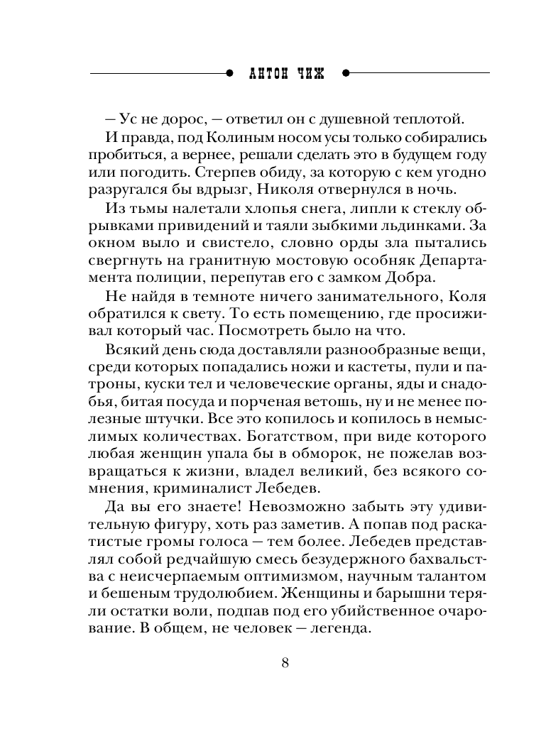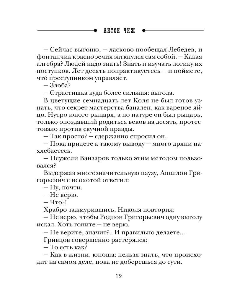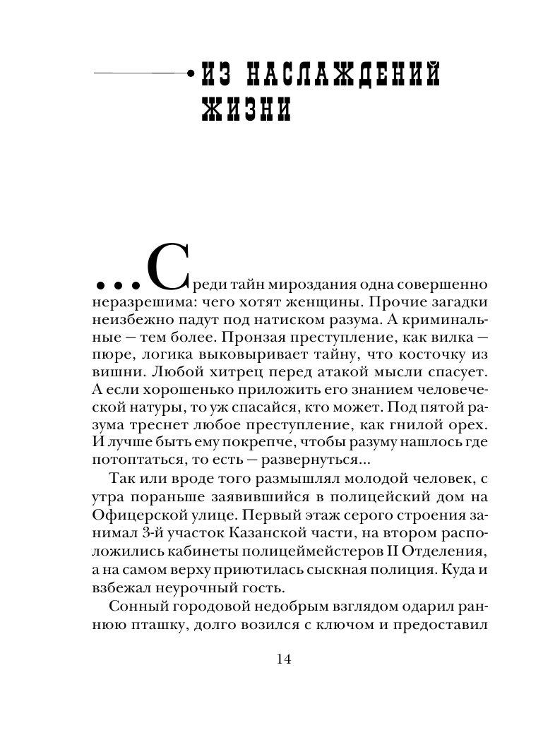 Очень нравятся исторические детективы Антона Чижа. Особенностью этой книги является ее содержание – шесть мини историй о расследованиях чиновника полиции Родиона Ванзарова, изложенных в виде воспоминаний его друга криминалиста Аполлона Лебедева. Читатель может принять предложенное им пари и попробовать отгадать виновников преступлений вместе с начинающим юным чиновником Николя Гривцовым, погружаясь в атмосферу Петербурга 19 века.
