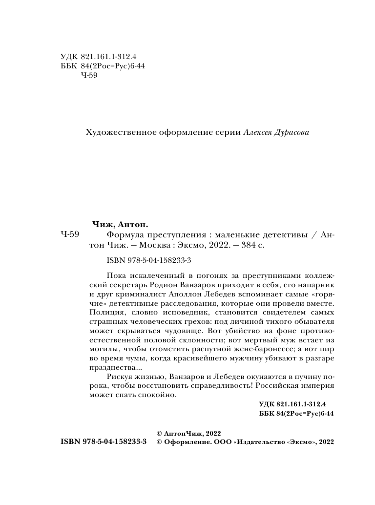 Книга: Формула преступления (Антон Чиж); Эксмо, Редакция 1, 2021