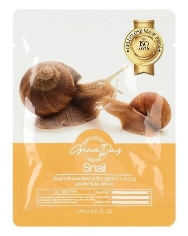 Тканевая маска для лица Grace Day с муцином улитки 27мл
