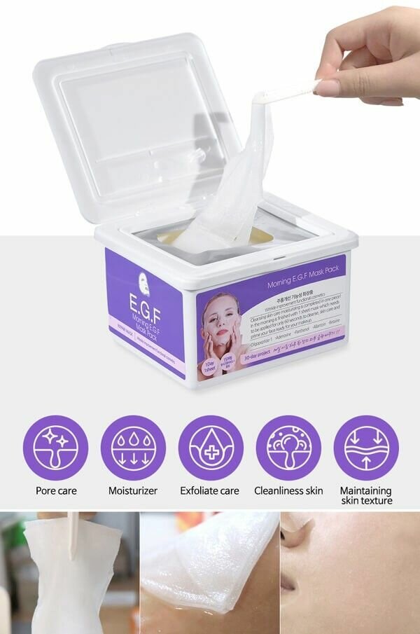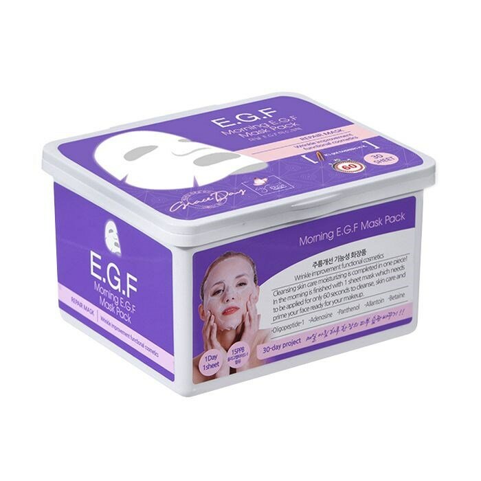 Тканевая маска для лица с EGF (эпидермальный фактор роста) эффективно разглаживает морщины, повышает упругость кожи, интенсивно питает и увлажняет на долгое время. EGF - эпидермальный фактор роста клеток - восстанавливает естественные процессы обновления кожи, устраняет морщины и возвращает коже под здоровый и сияющий тон.Подходит для зрелой, тусклой кожи с возрастными изменениями.30 масок в упаковке: 1 день — 1 маска. В этом наборе вы получаете полный курс для гарантированного результата.Применение: извлеките маску из упаковки, нанесите на чистое лицо и расправьте. Оставьте на 60 секунд! затем удалите. Распределите остатки средства легкими похлопывающими движениями и дайте впитаться. Рекомендуется использовать каждый утро/день.Меры предосторожности: избегать попадания в глаза, в случае возникновения раздражения прекратить использование. Состав: см. на упаковке после слова Ingredients.