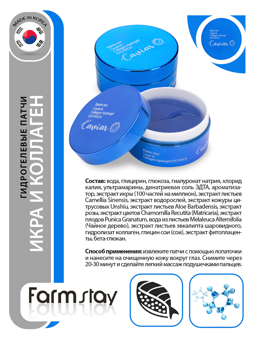 Гидрогелевые патчи для области вокруг глаз FarmStay с икрой и коллагеном 60шт