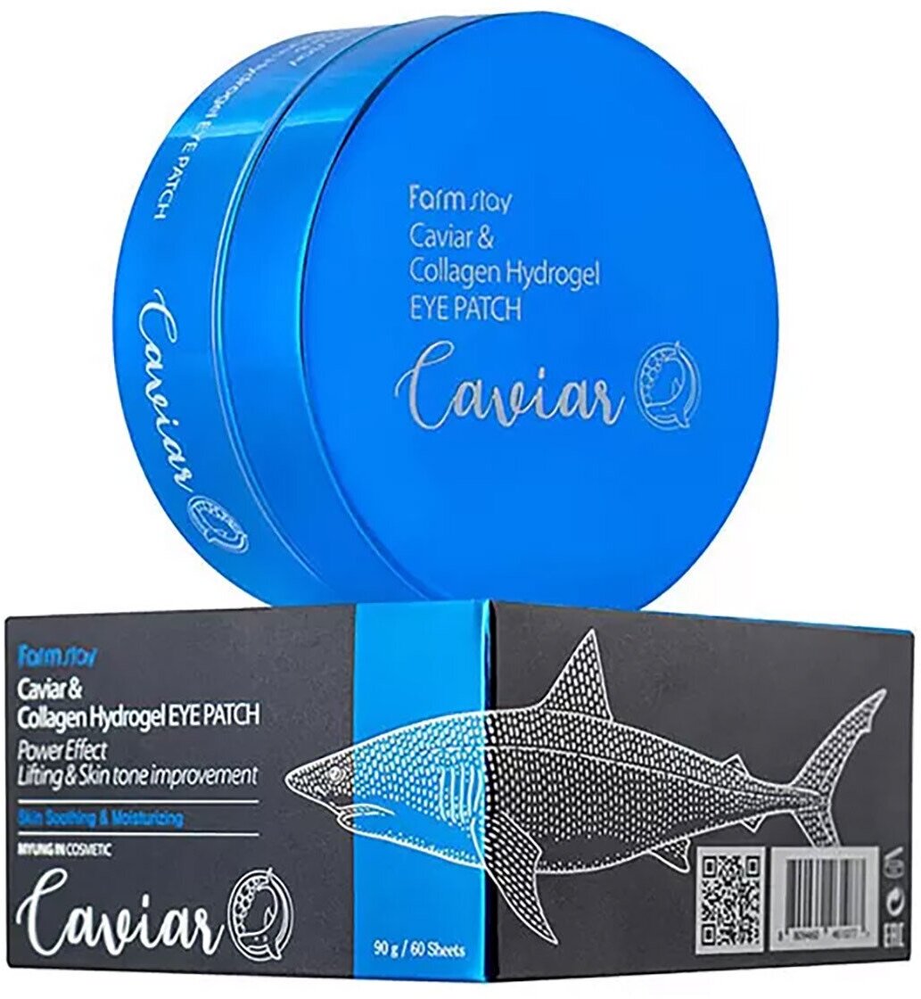 Гидрогелевые патчи Hydrogel Eye Patch Farm Stay Caviar & Collagen с икрой и коллагеном для сияния и упругости кожи вокруг глаз оказывают двойной разглаживающий и подтягивающий эффект благодаря экстракту икры и морскому коллагену. Патчи плотно прилегают к коже, максимально отдавая ей полезные вещества, входящие в состав.