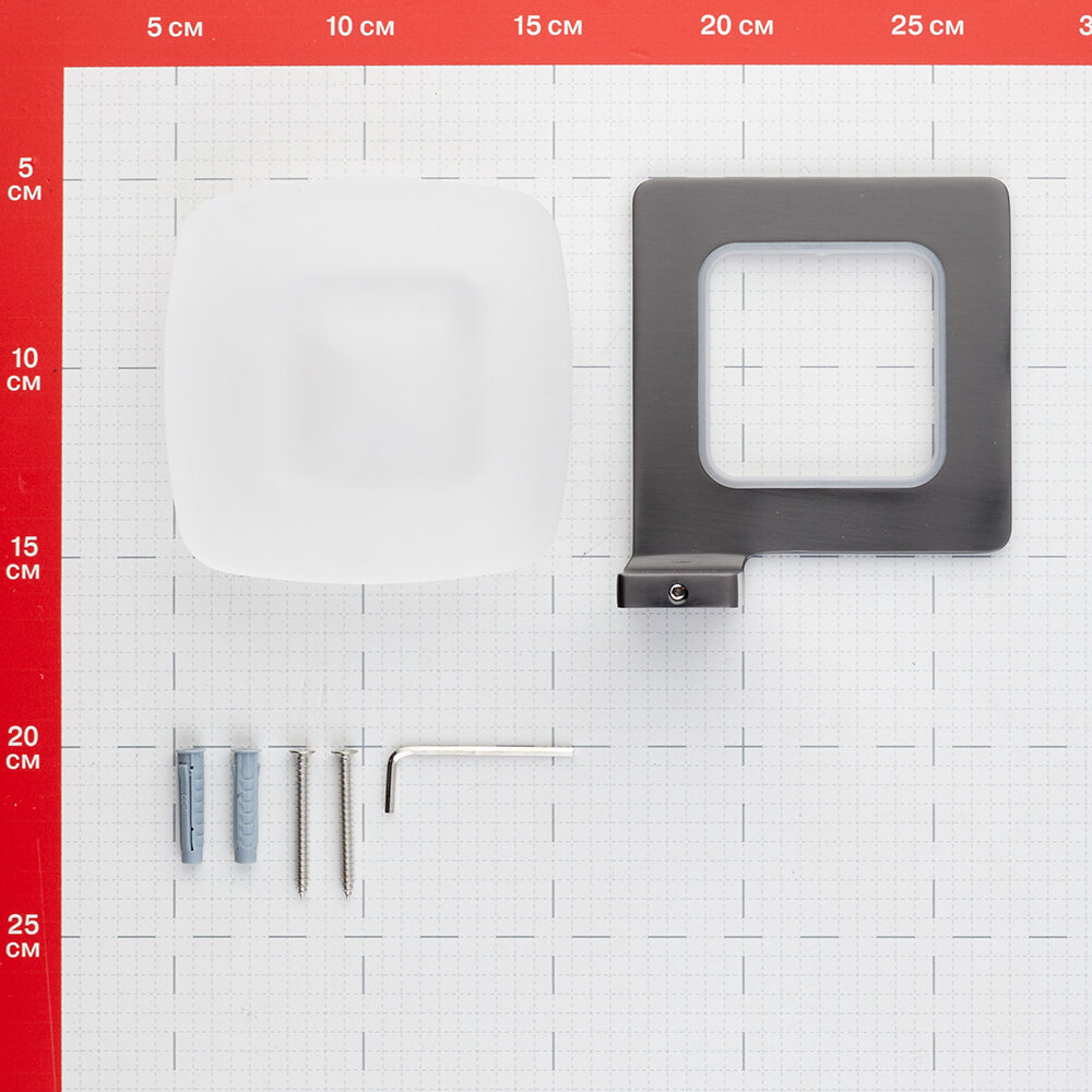 Матовое стекло, сплав металлов, цвет графит, крепеж в комплекте. Упаковка: картонная коробка.