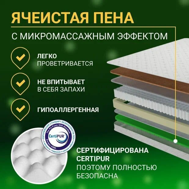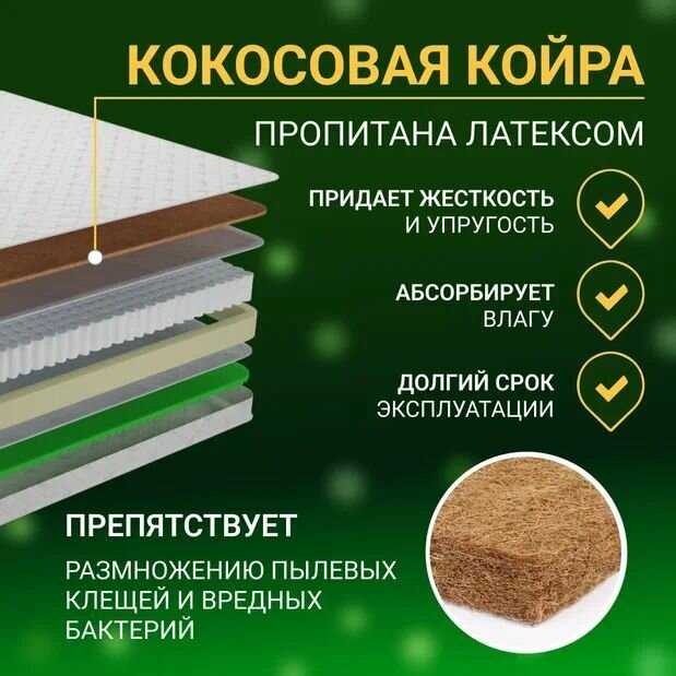 | Описание | Классический ортопедический матрас имеет разную жесткость сторон. Со стороны средней жесткости использована натуральная кокосовая койра. Со стороны низкой жесткости - ортопедическая пена с микромассажным эффектом. |