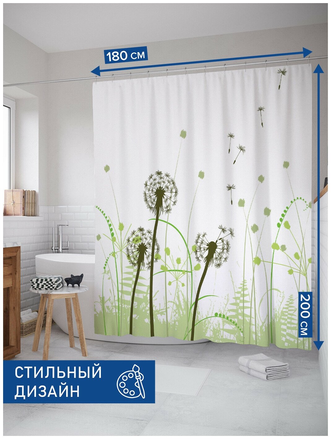 Шторка-занавеска для ванной JOYARTY Штора для ванной Мир одуванчиков 180х200 см