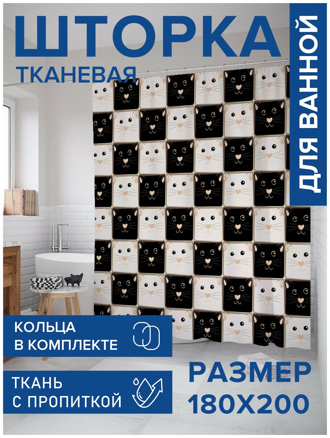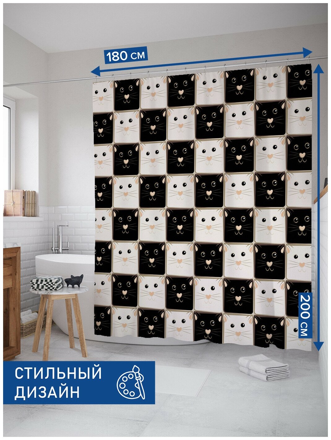 Шторка-занавеска для ванной JOYARTY Штора для ванной Котики 180х200 см