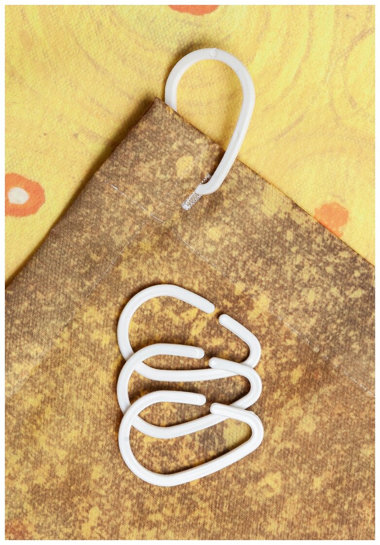 Красиво декорированная шторка, защищающая пол и оборудование ванной комнаты от брызг воды, изготовлена из полиэстера и обладает выраженными водоотталкивающими свойствами. Занавеска для ванной 180х200 комплектуется 12 прочными крючками из пластика и имеет в верхней части столько же обработанных на оверлоке отверстий. Декоративный рисунок нанесен на поверхность ткани при помощи фотопечати. Такие принты не боятся влаги и не смываются даже очень горячей водой.