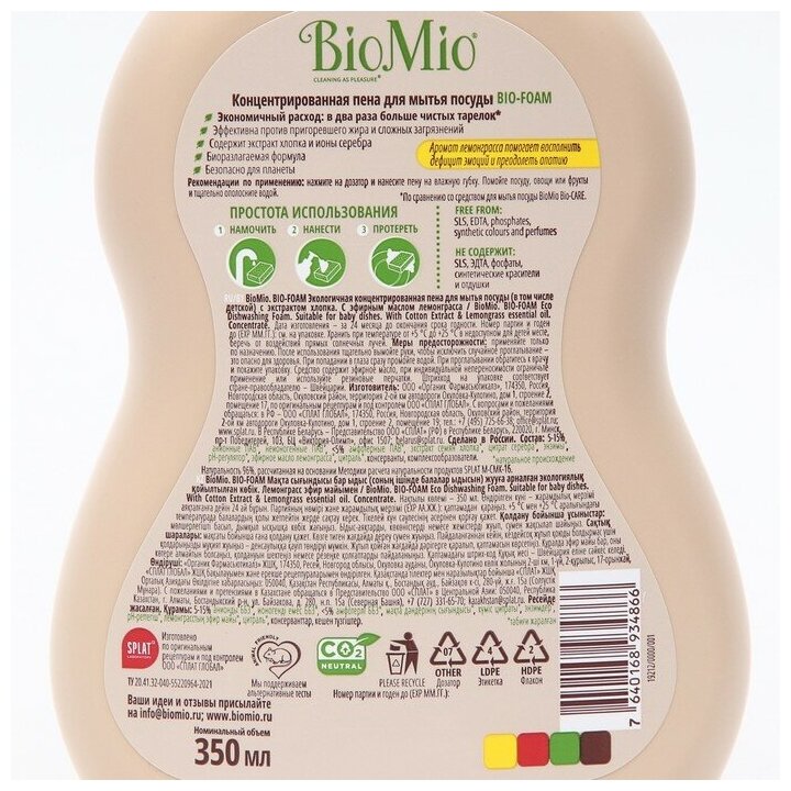 Экологичная пена BioMio Bio-Foam для мытья посуды без запаха 350мл 934859