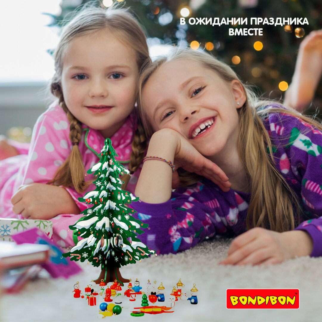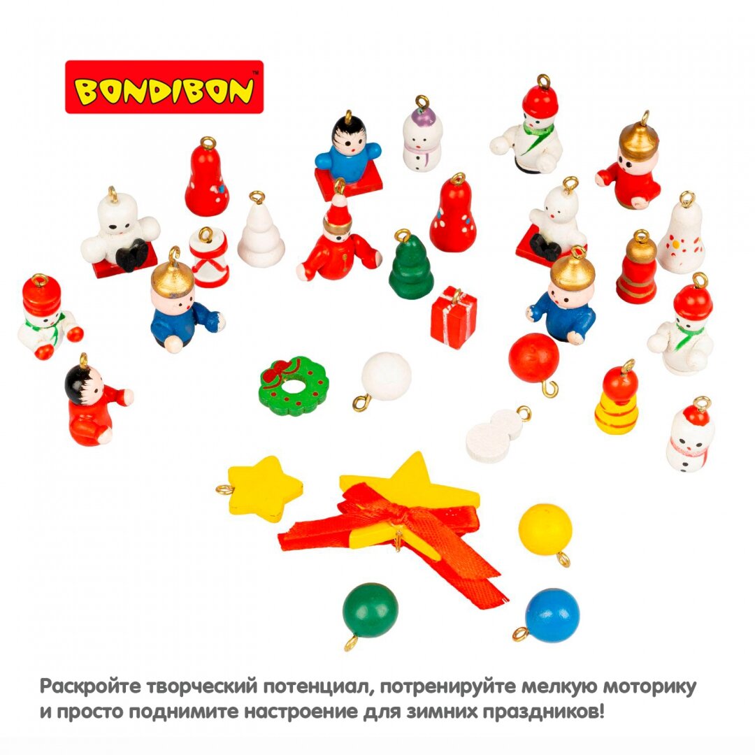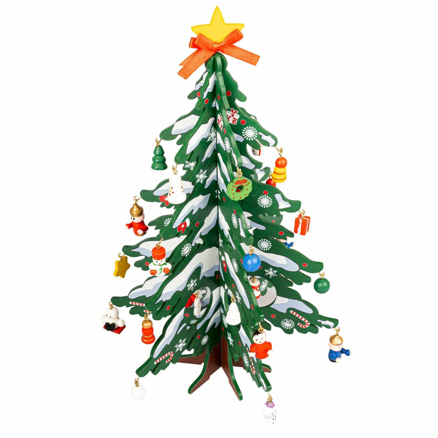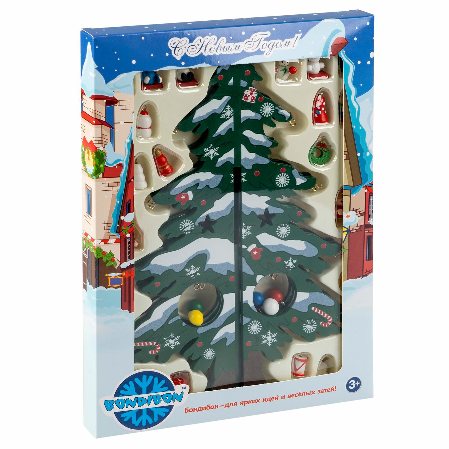 - Новогодний набор Деревянная ёлочка 3D с игрушками BONDIBON 21,5 см