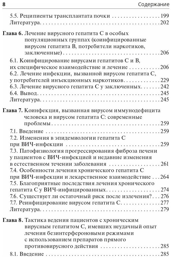 Описаны существующие в настоящее время основные принципы терапии у разных категорий больных, в том числе у пациентов особых групп (при почечной недостаточности и декомпенсированном циррозе печени, при коинфицировании вирусом гепатита В и ВИЧ, у потребителей инъекционных наркотиков, заключенных и др.).