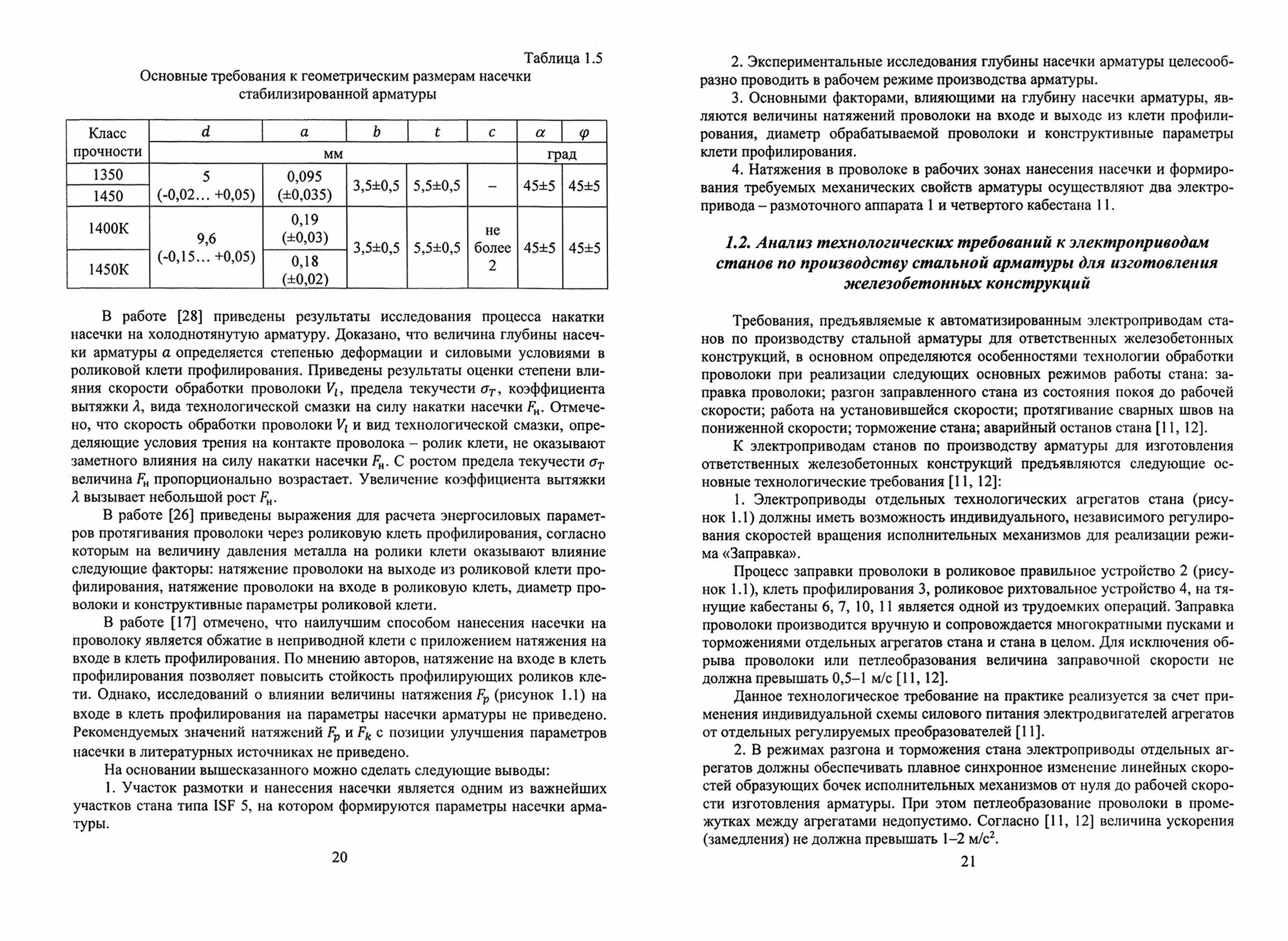 Приведены результаты экспериментальных и теоретических исследований работы электропривода размоточного аппарата стана по производству высокопрочной арматуры. Предложена методика расчета допустимого изменения натяжения в проволоке, создаваемого электроприводом размоточного аппарата между роликовым правильным устройством и клетью профилирования. Сформулированы технологические требования к системе управления электроприводом размоточного аппарата с позиций обеспечения глубины насечки арматуры в пределах допустимых значений за счет стабилизации натяжения в проволоке между роликовым правильным устройством и клетью профилирования.
