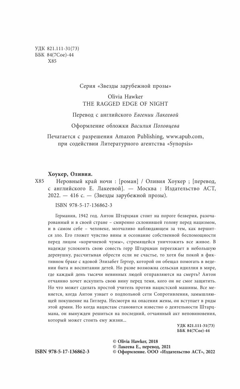 Книга: Неровный край ночи (Оливия Хоукер); Издательство АСТ, 2018