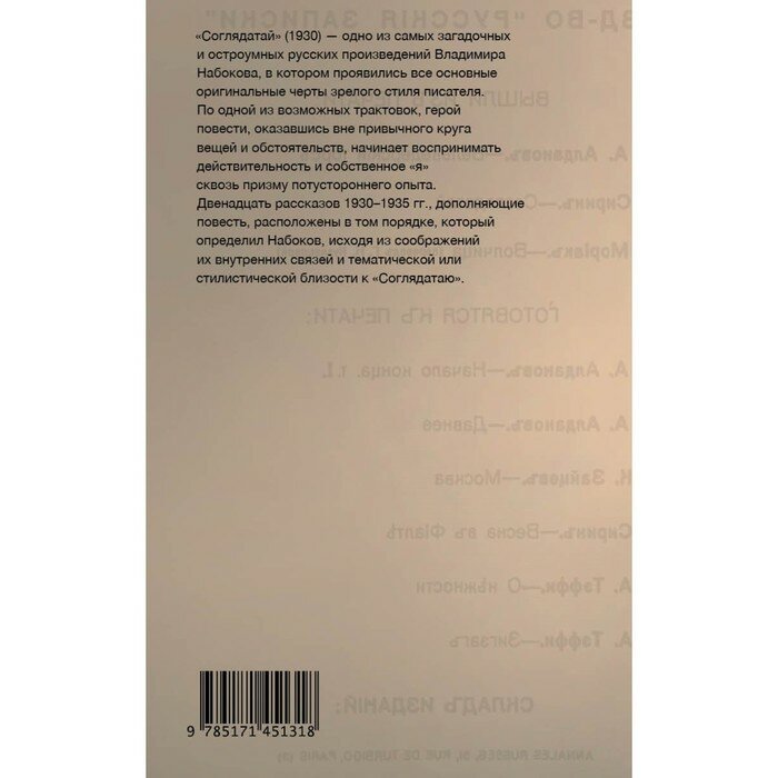 Сервис сравнения цен СкидкаГИД предлагает сравнить цены на товар «Книга: Соглядатай (Владимир Набоков); Corpus (АСТ), 1930-1965»