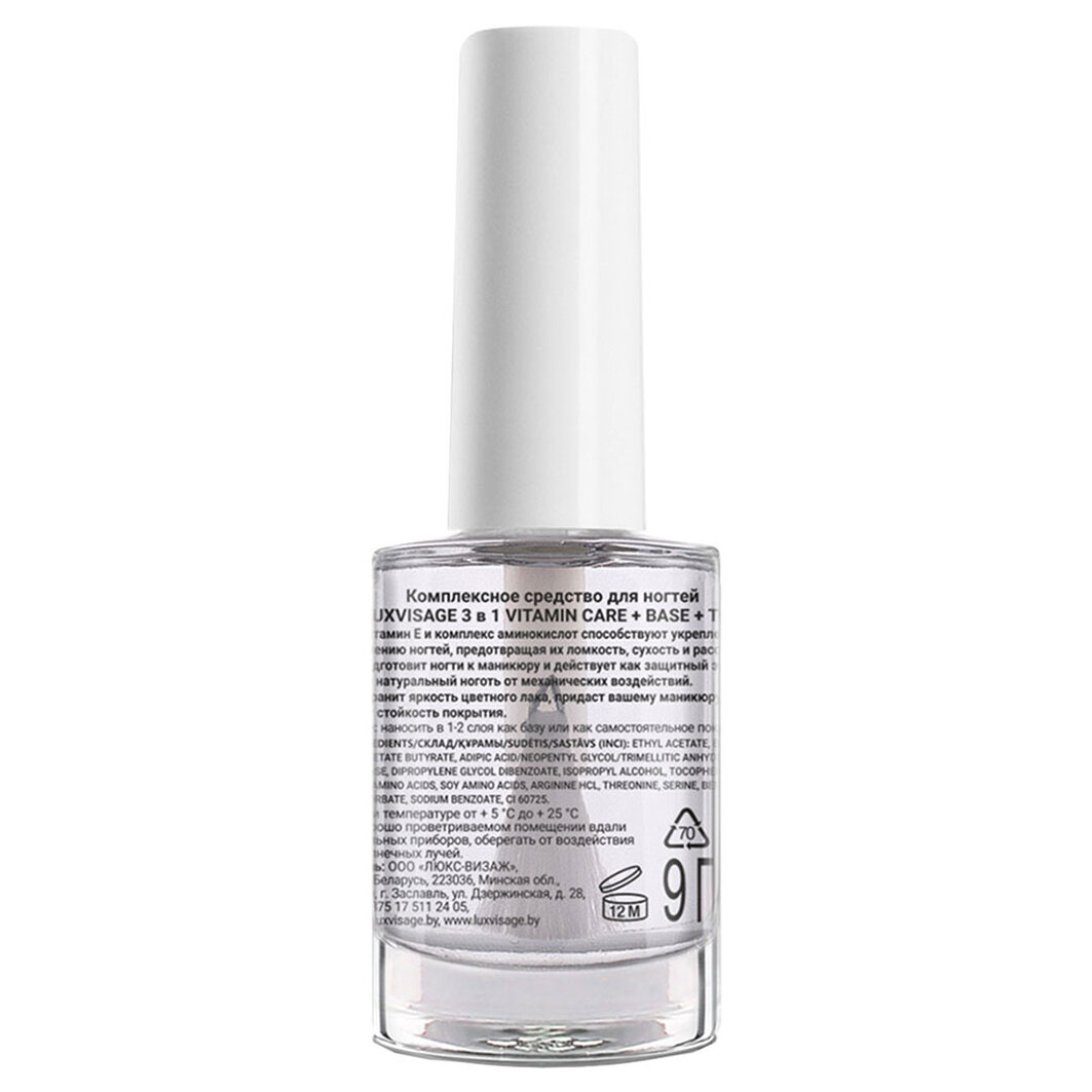Комплексное средство для ногтей 3 в 1 vitamin care+base+top luxvisage 9 мл Lux Visage (1509882)