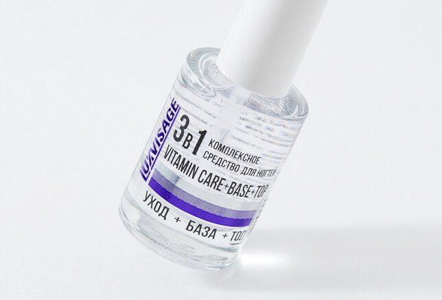 В составе средства — витамин Е и комплекс аминокислот. Они укрепляют и увлажняют ногти. В качестве базы средство обеспечивает равномерное нанесение лака и защищает от глубокого проникновения красящих пигментов. А в качестве топа — придаёт ногтям глянцевый блеск и продлевает стойкость маникюра.