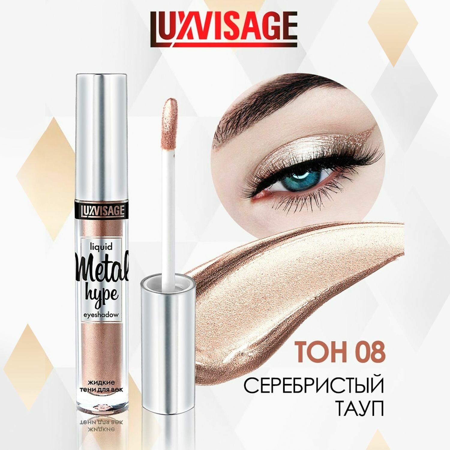Тени для век жидкие тон 08 серебристый тауп metal hype luxvisage 35 мл Lux Visage (1509882)